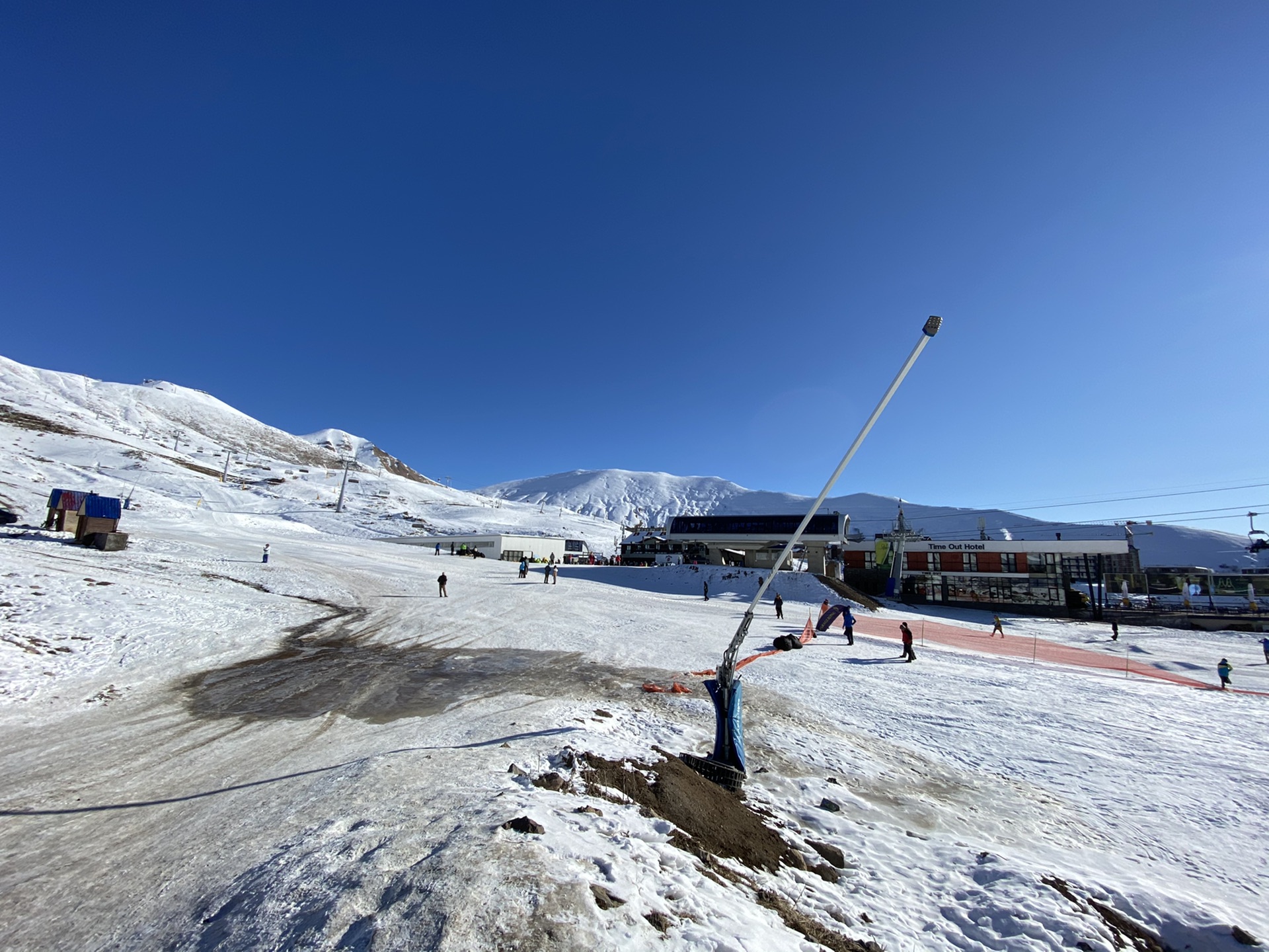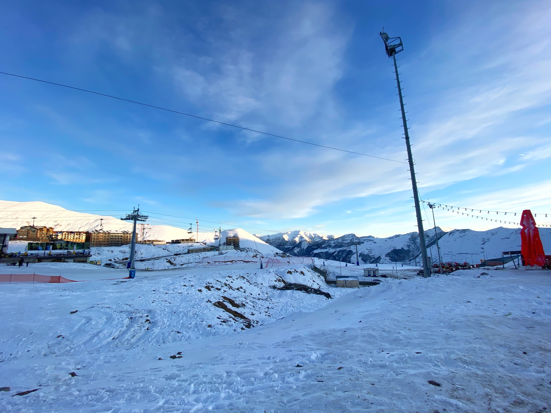 2020年冬季的格鲁吉亚是多年一遇的大暖冬,雪道开放的比往年都晚,快到1月才刚刚下了场大雪,之后一直到春节都没有再下过雪,雪道上都已经露出了石头,酒店门口的地面也都已经化成了冰块,非常滑。