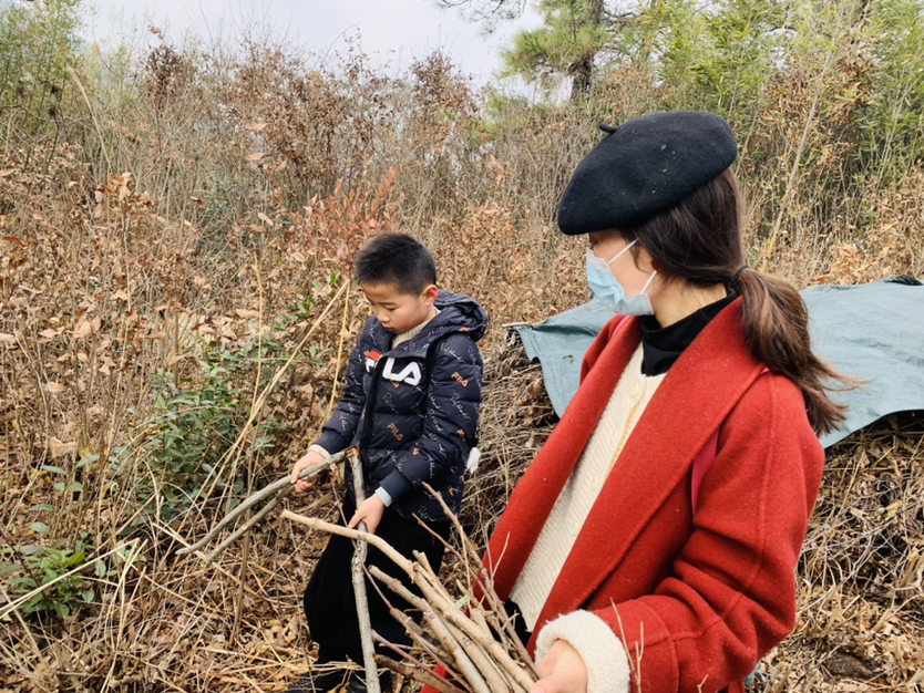 哈哈哈。。大家兴致勃勃的捡着树枝。