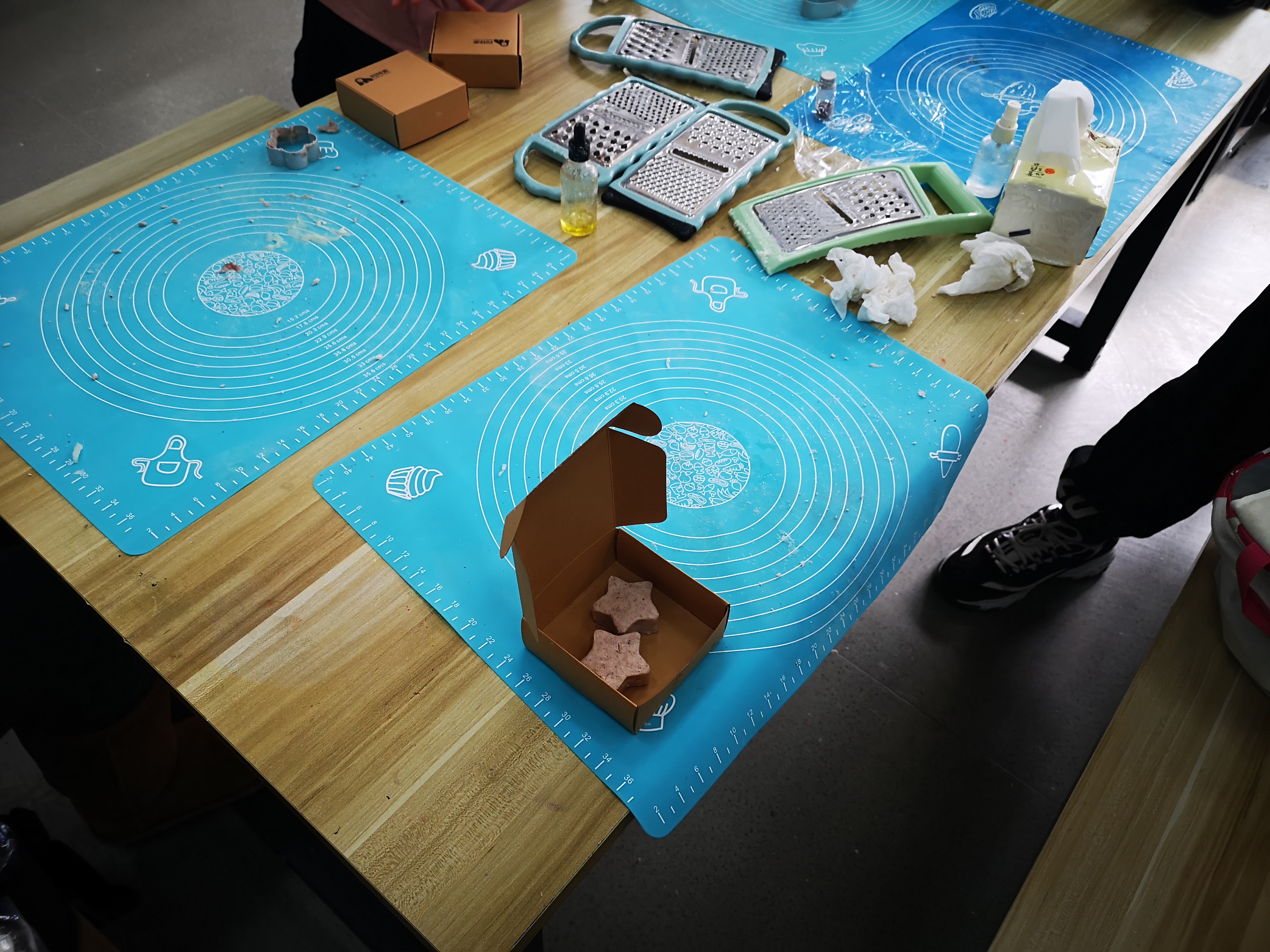 在老师的带领下,我们先做了小叶紫檀手工皂。小宝贝们拿着自己做的手工皂,格外兴奋。