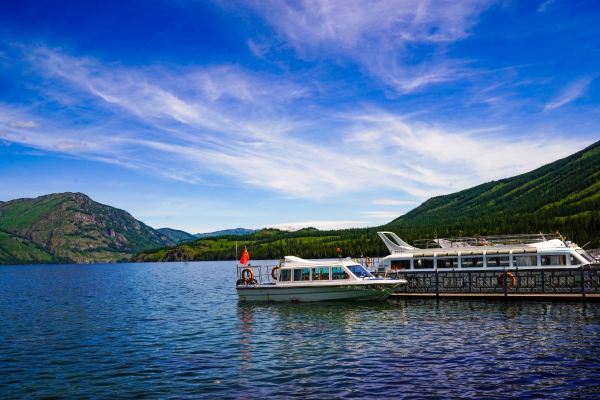 从一道湾双湖码头乘坐游船,双湖游船作为欣赏喀纳斯最新的感知方式,这是一种不可多得的体验,经过近30分钟的急驰,除了两岸风光,对于喀纳斯神秘的贴近接触,更是一种难得的体验。