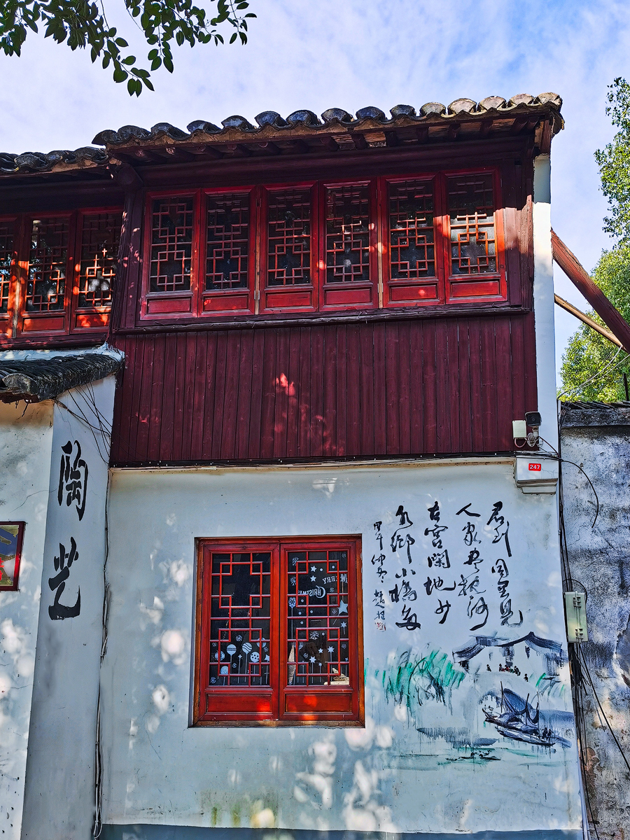 继续向 千灯 的街巷里走,白墙黑瓦,景色宜人。却许多店铺与戏剧服装琴行的买卖或拍照有关,真是昆曲之乡,昆韵盎然。