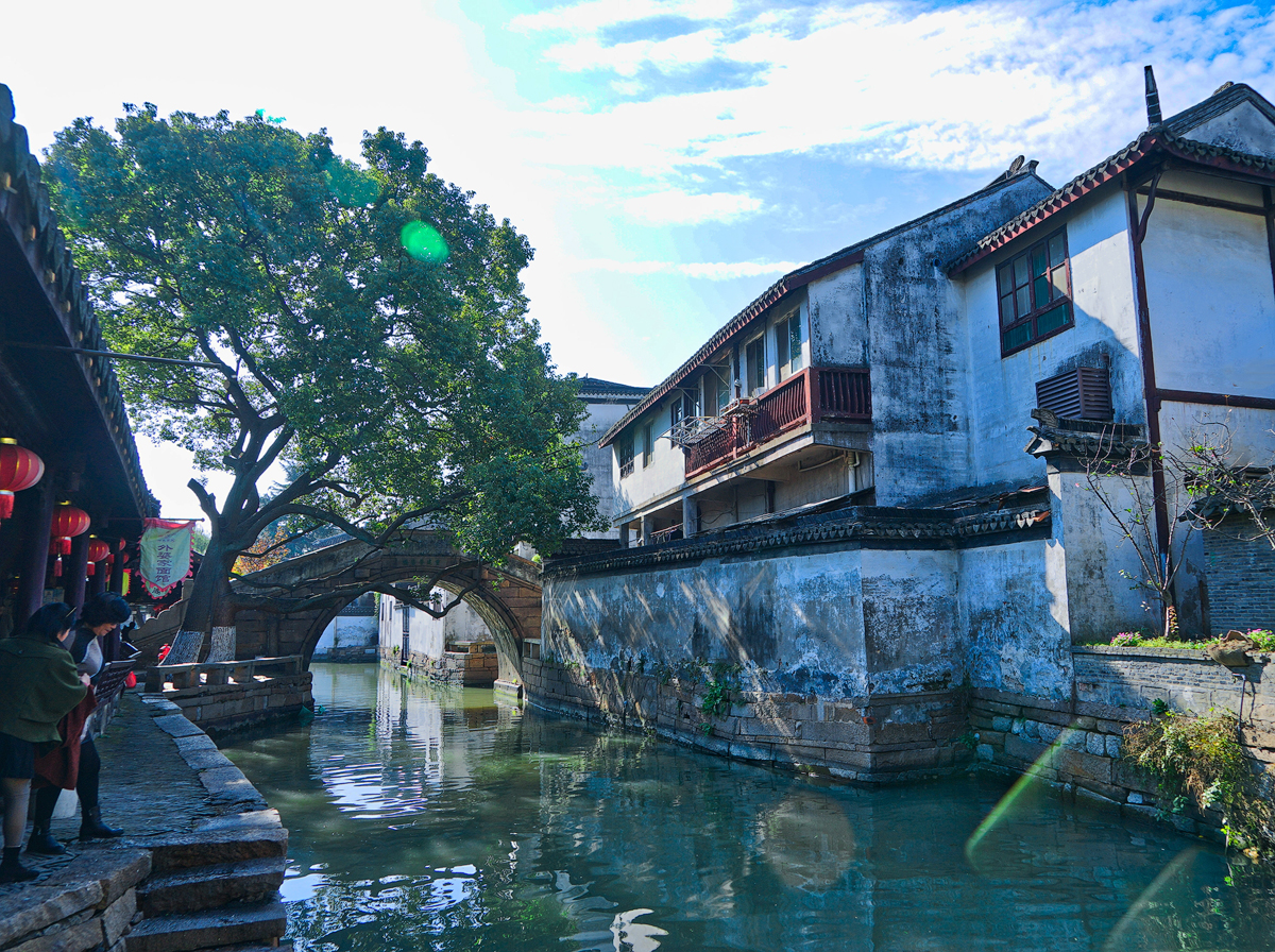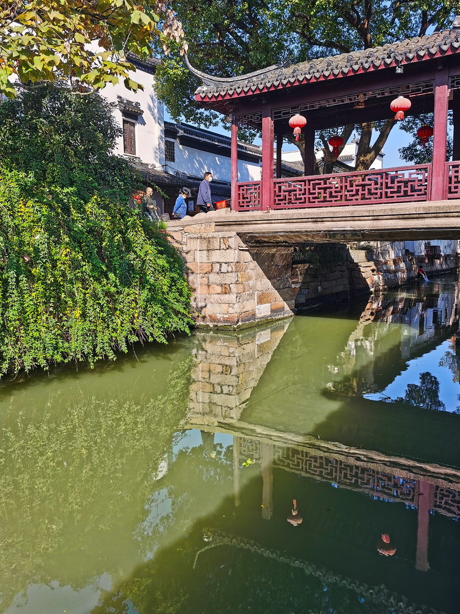 这座里和桥又称南塘桥、南观音桥。建于南宋,坐落在古莲池西侧的三图河上,为明代“ 锦溪 八景”之一,“古井风亭”所在地。 大树 伴古桥与倒影,很有味道啦!登上 锦溪 手摇船,悠悠荡荡,细数一座座古桥从船顶滑过,吟诵建筑凝固的古诗词,聆听水乡女子的 江南 曲调……