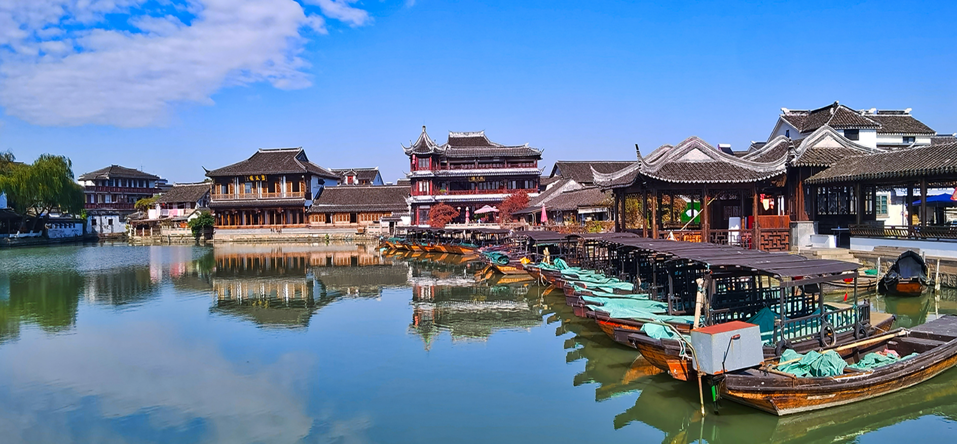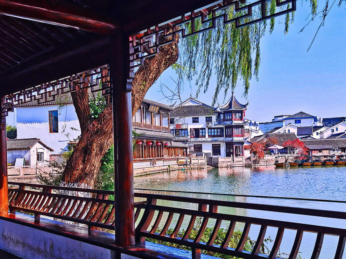 蓝天,垂柳,白墙黛瓦,水乡古镇,大抵也就如此模样了……