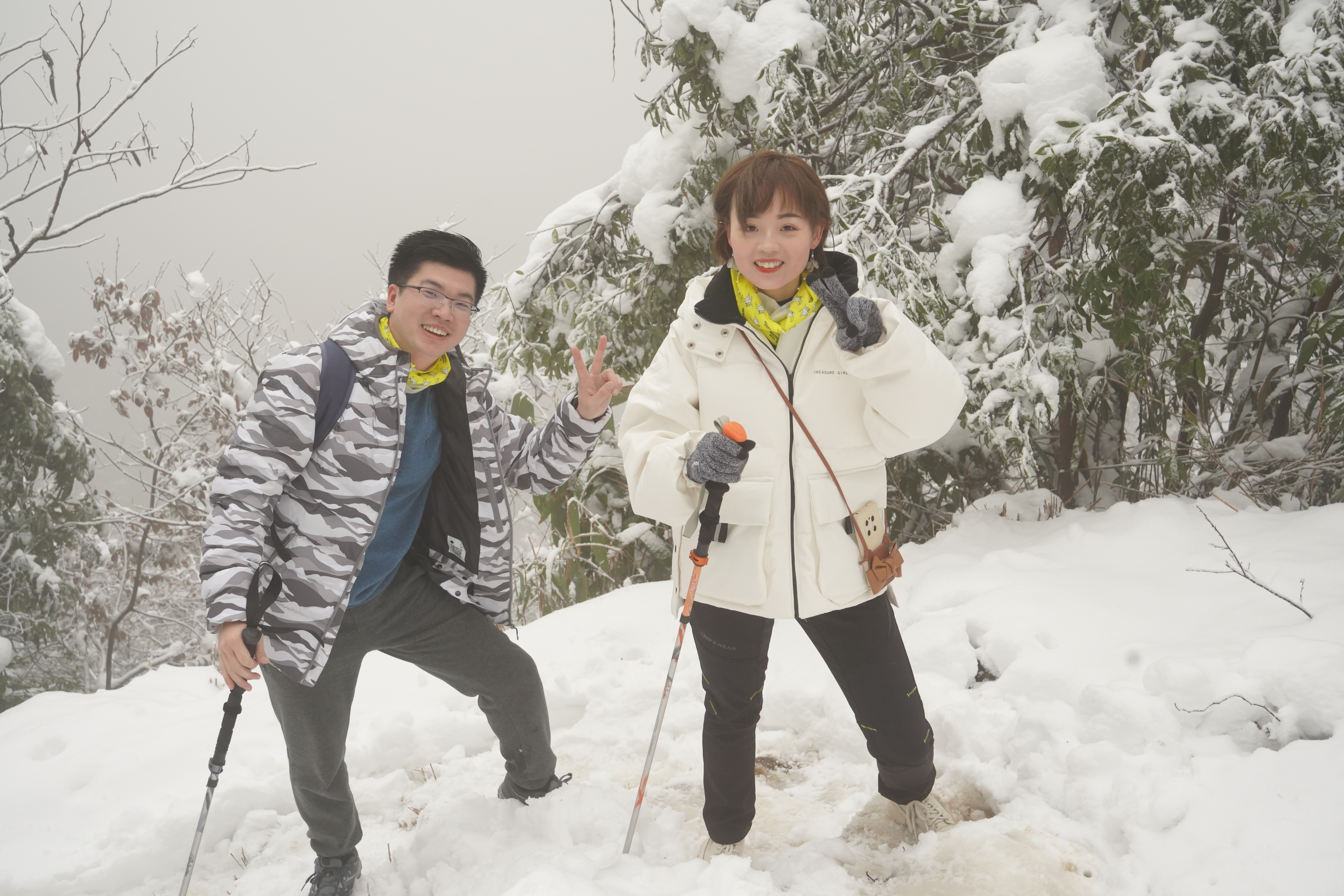 经过凉亭、龙门瀑布,一直向上,渐渐地冰雪覆盖路面,越往上积雪越厚,到杏梅坞林场,已是一片冰雪世界
