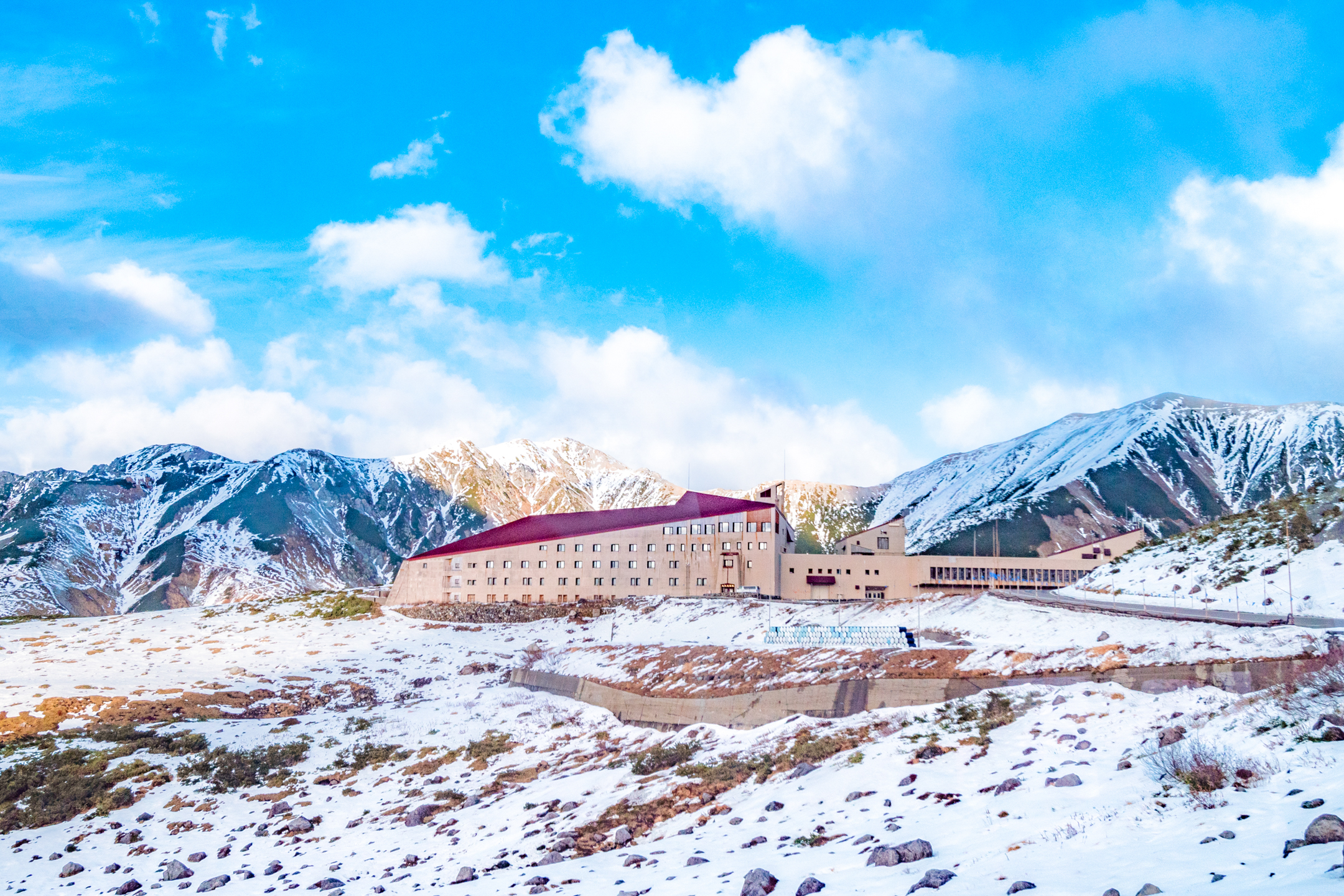 一到室堂,马上就能看到伫立在山上的立山酒店。 这里海拔2450米,是离星星最近的酒店。 入夜后,满天星斗是只有入住的旅客才能享受到的梦幻美景。