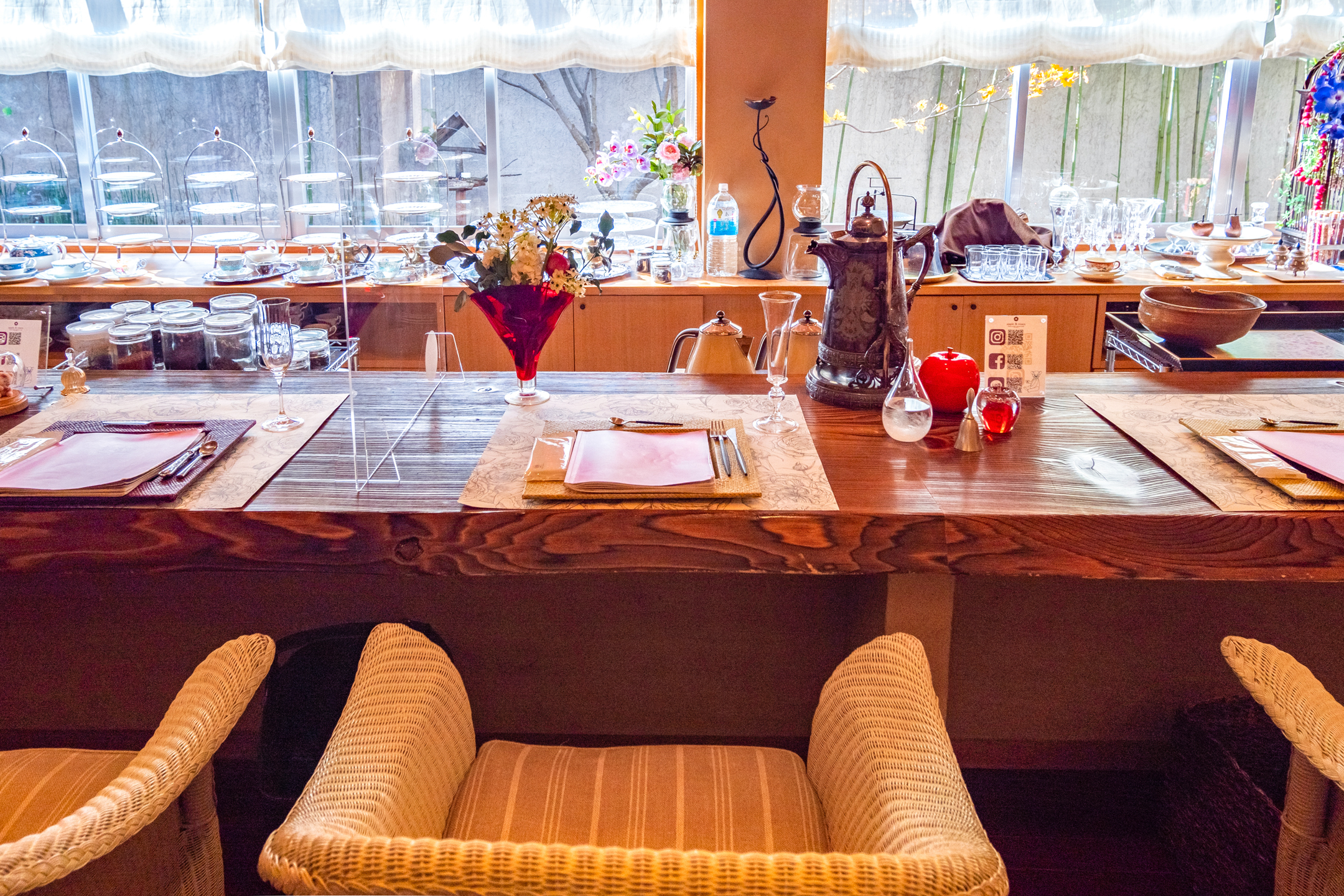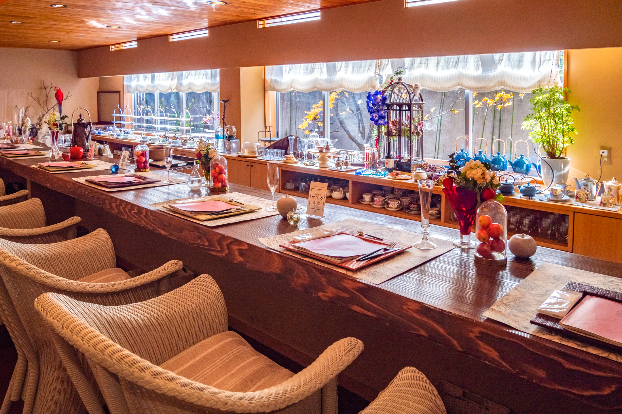 在安昙野的以苹果&玫瑰“apple & roses”为主题的时尚咖啡店品尝精致的甜点和红茶,放松一下吧。