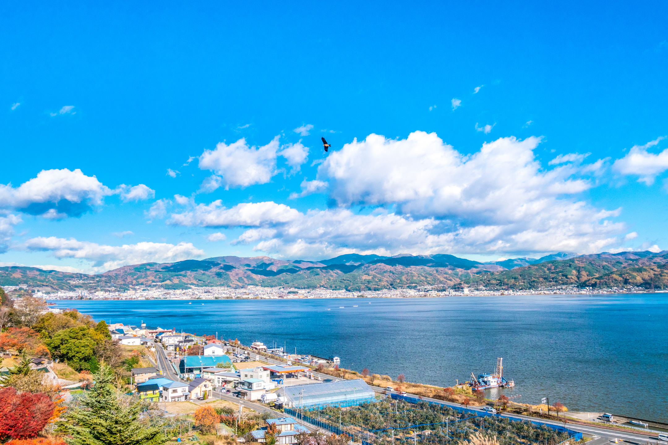 从安昙野到诹访大约需要1个小时左右。推荐在路上到诹访SA休息,从这里也可以眺望因动漫电影《你的名字》而大热的诹访湖。诹访湖景色静谧恬淡,很适合午后坐观。