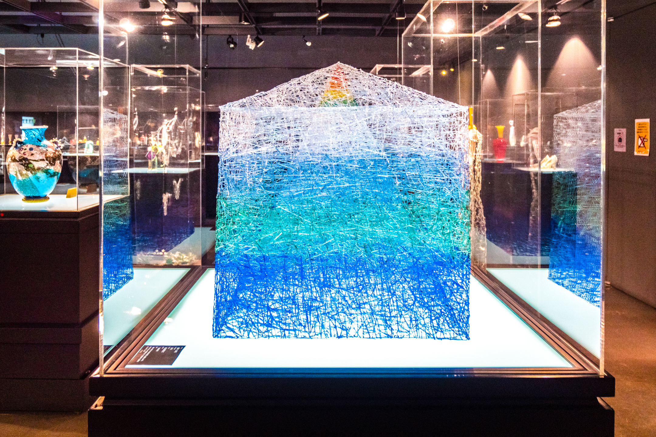 在SUWA玻璃之乡,不仅可以欣赏来自世界各地大师们的玻璃艺术作品,还可以在体验工坊里,制作蓝色玻璃球和玻璃印章。