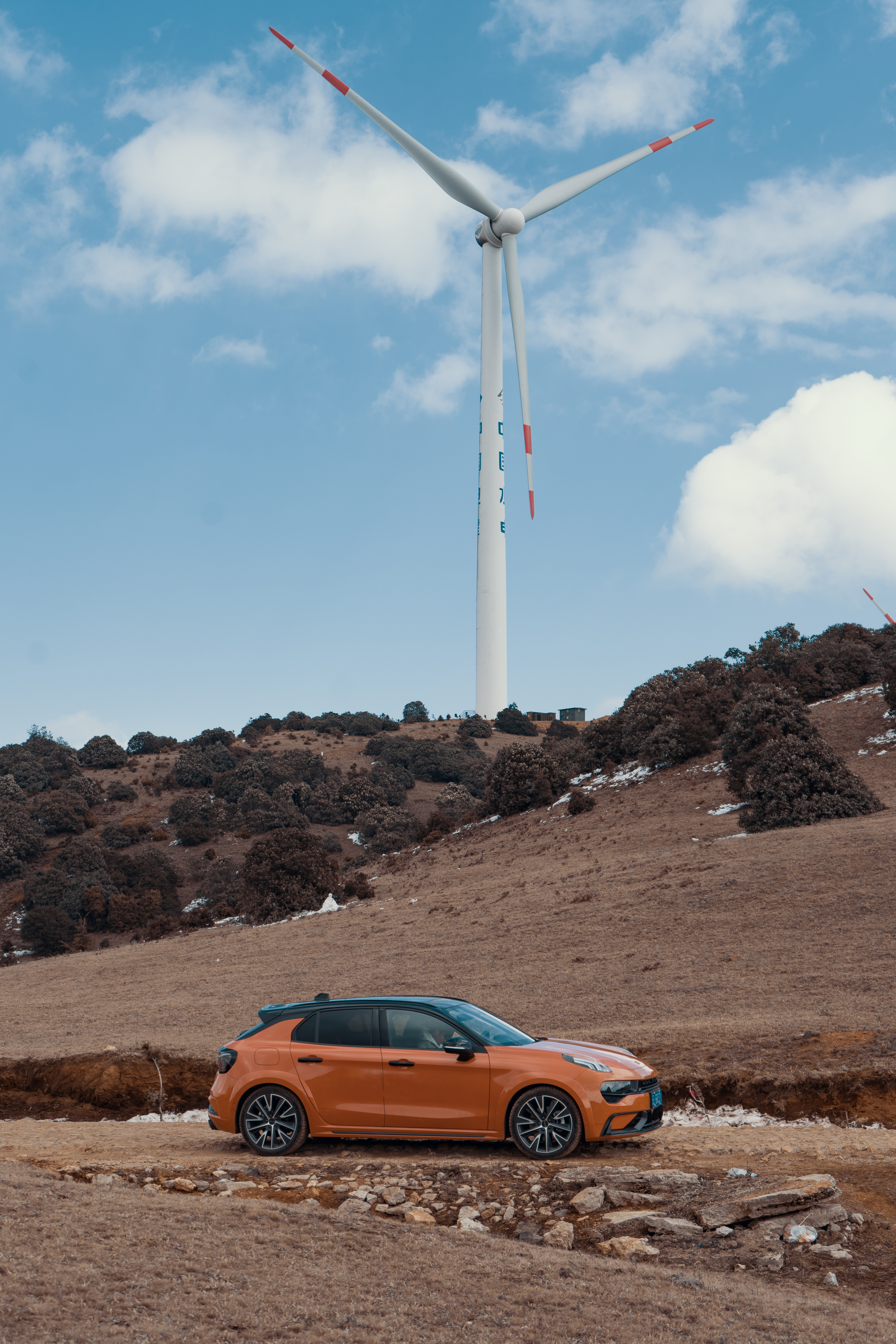 夏天的风车山是高山草原 羊群风车 蓝天白云 狗狗牧羊人 ,这个时候只是少了一点点绿和狗狗牧羊人,因为山顶太冷了360无死角的妖风妖风〜好在,这里真的太美了,幕后王同学上线,撒欢。