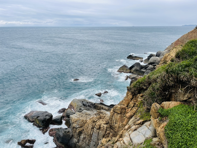分界洲岛,不负其名。我们观海阁所在的岛南,波涛汹涌、悬崖峭壁。而我们此时漫步的岛北,海水清澈、沙滩细软。