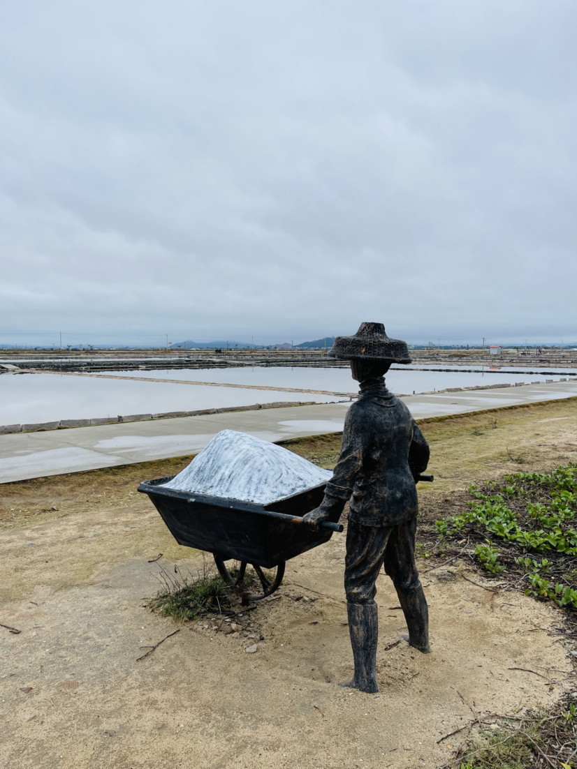 盐场有很多雕塑,向参观者描述盐场工作场景。