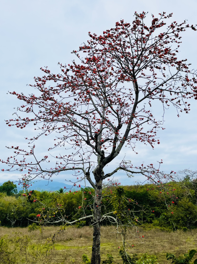 公路两旁、房前屋后、河岸溪边、荒坡野岭、高山平地、田间地里都可以看到木棉花。