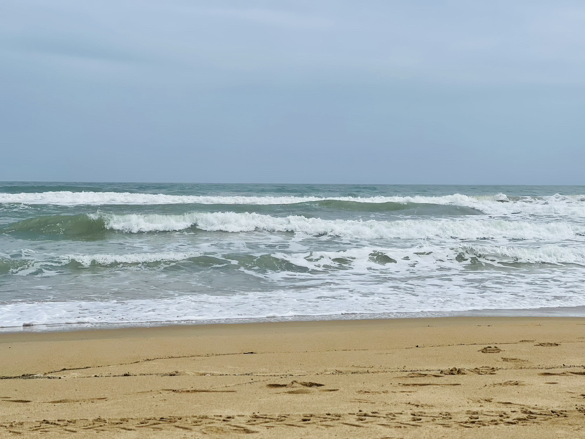 “海的故事”也在玉带滩边,从度假公寓慢慢走过去十五分钟足矣。这里非常适合拍照,因为不是旺季,所以人并不多。