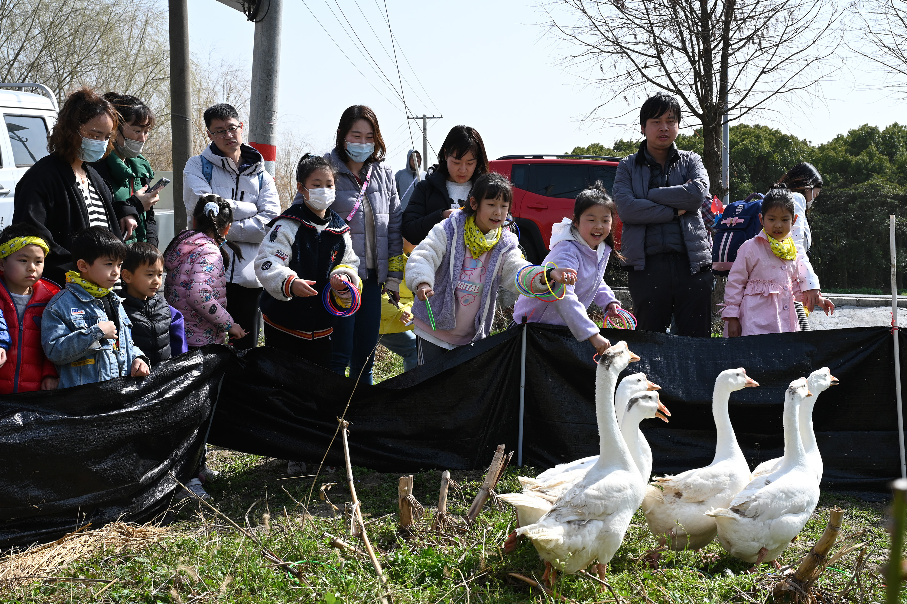 宝贝们一个个化身套鹅小能手开始了疯狂套大鹅游戏。在试验了一两次后发现套大鹅的游戏远比想象的难!但宝贝们不甘示弱,大家互相分享经验,耐心得等待着大鹅跑到自己的跟前,然后出击。