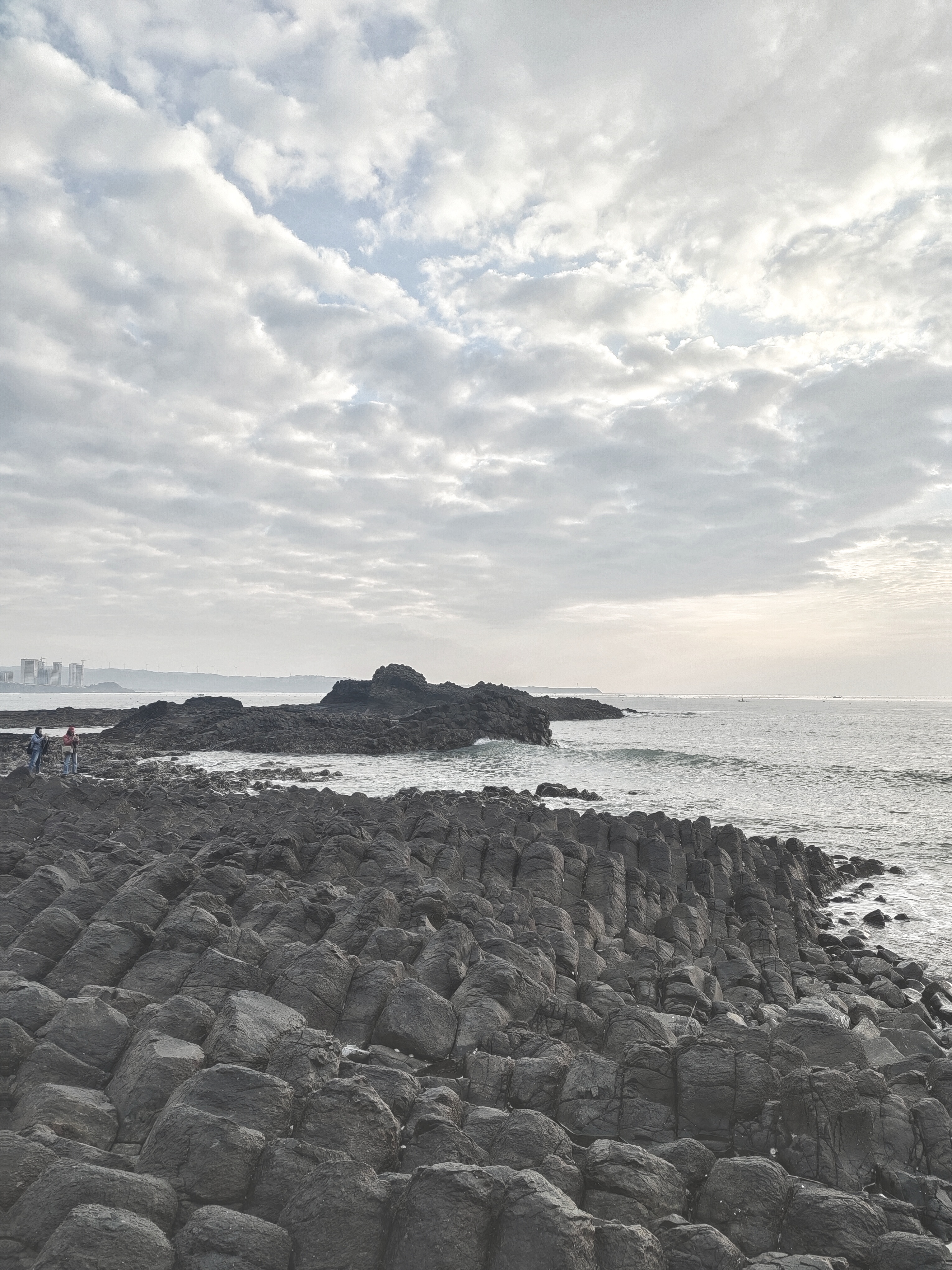 岸边的火山石如摆兵布阵,整装待发,颇有气势,就此有“海上兵马俑之称”