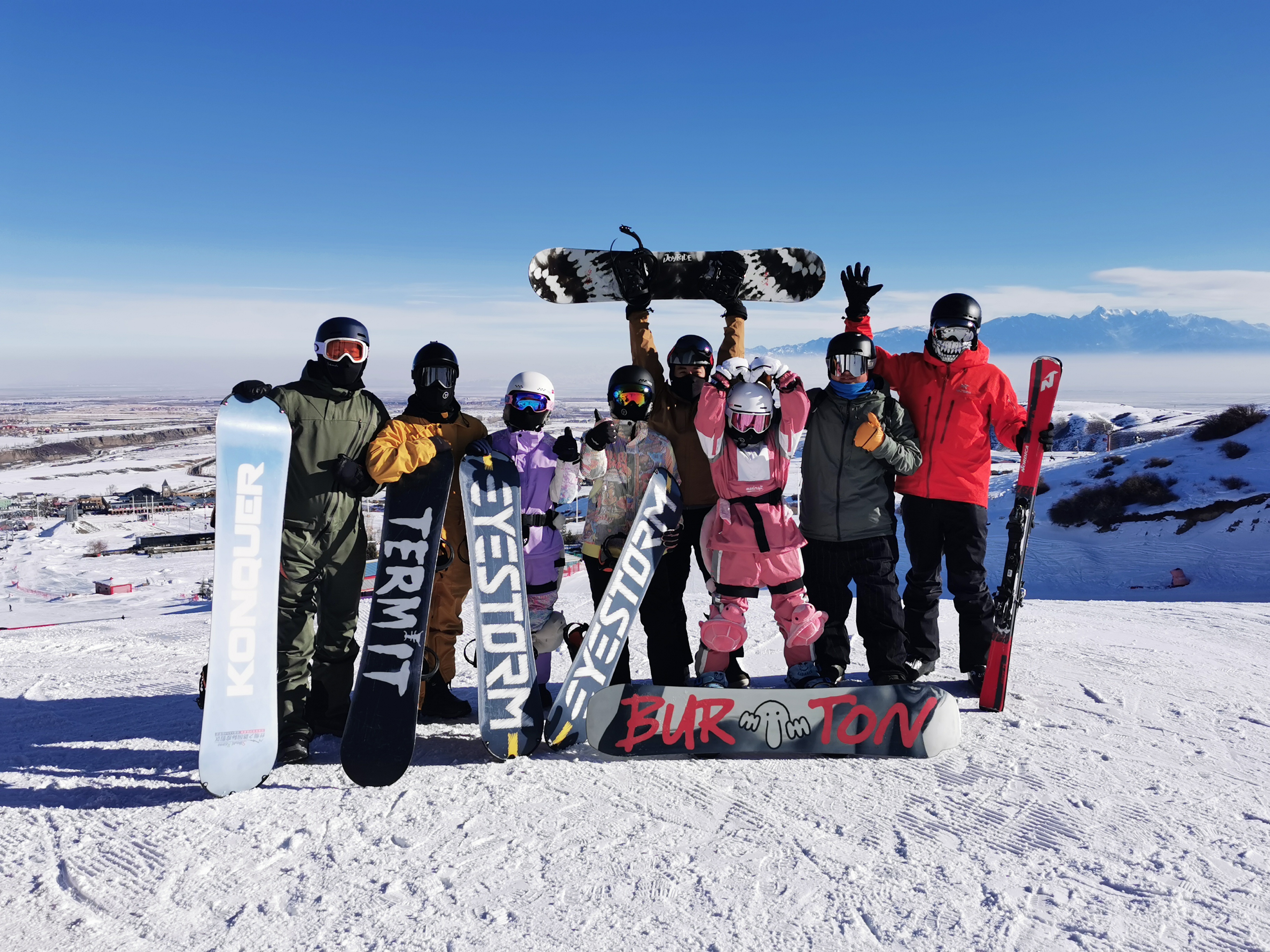 滑雪小分队的第一张合影,献给了博格达峰。