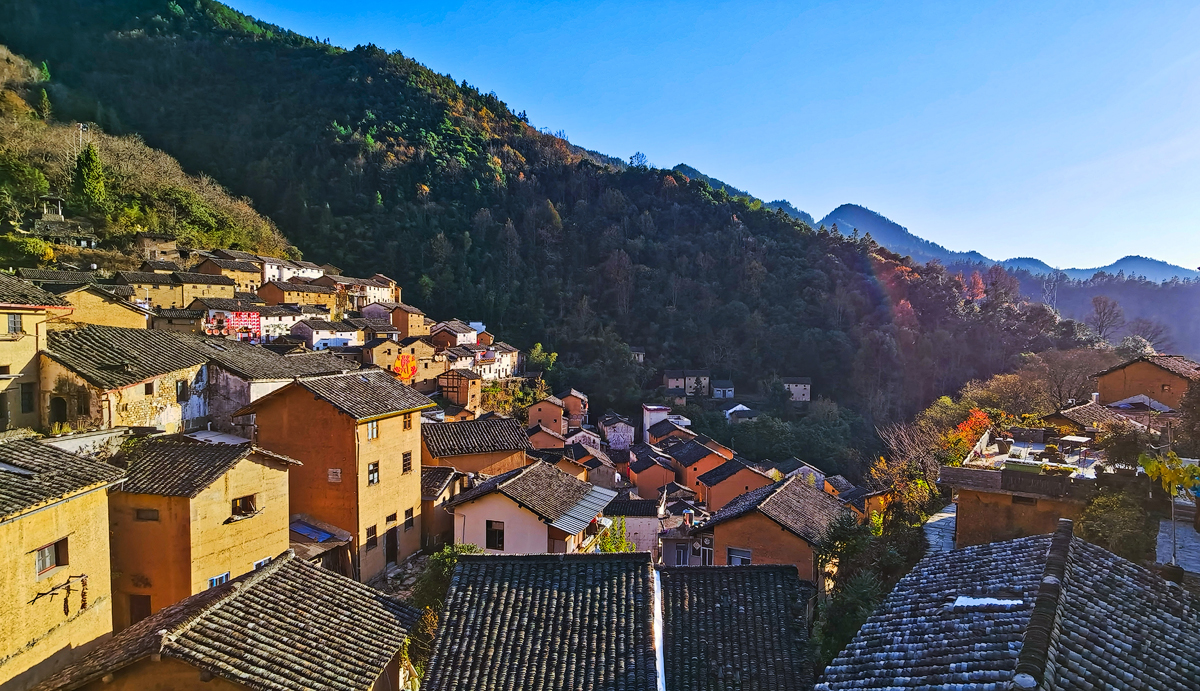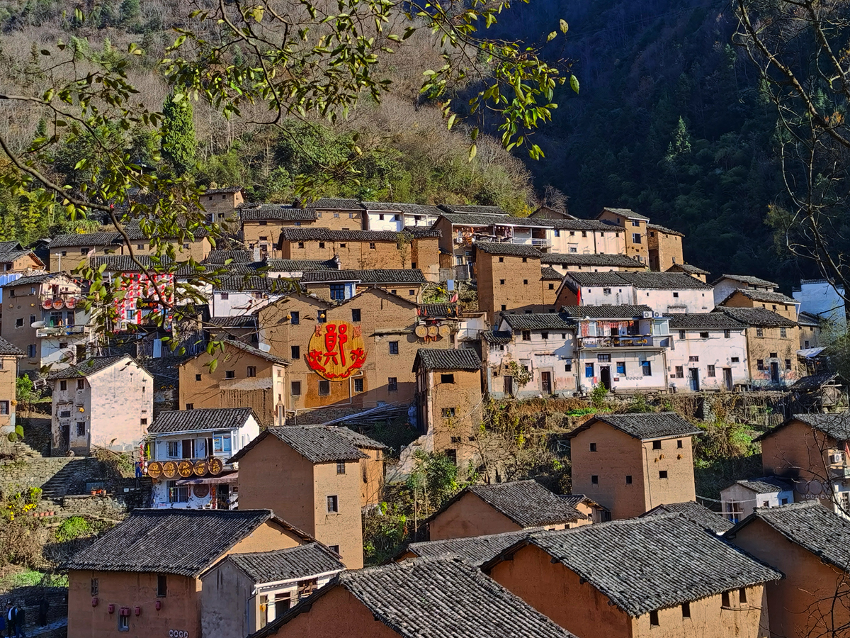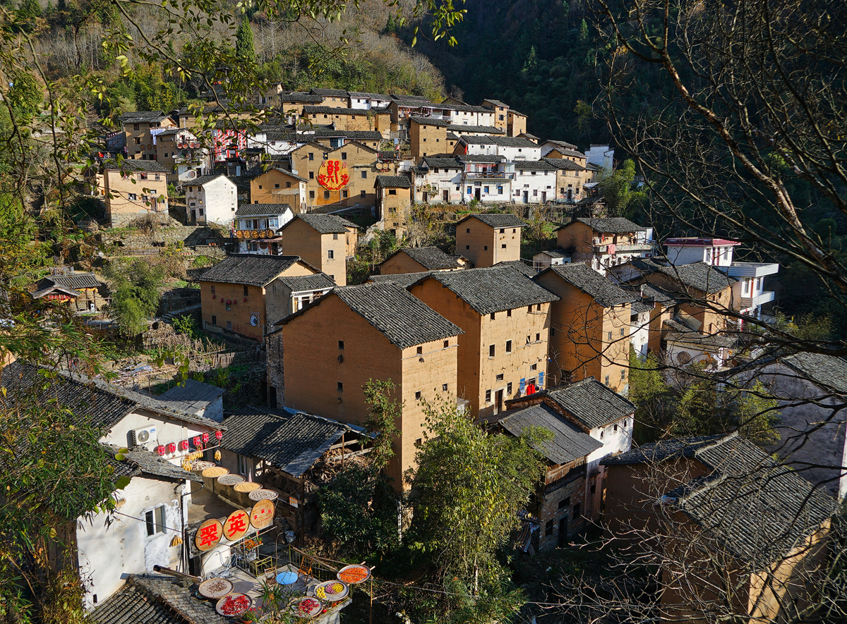 作为深山古村,体现着清代山村住宅的传统风貌和地方特色。”整个古村依山而建,虽然经历了五六百年的风风雨雨,窄街小巷,清一色的石板铺地,徽派风格的老屋错落有致,黄泥筑就的土楼穿插其间。