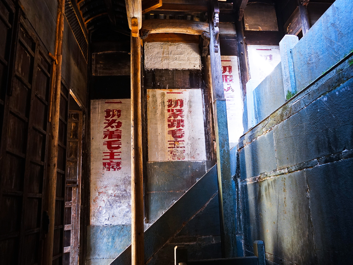 我们沿着土楼的青石板台阶,上上下下,这里没有现代装饰,它把旧日时光停留在阳产的半山腰,流年之中,质朴壮观的土楼,一晃就如斑驳的年轮,处处留下了历史的脚印。