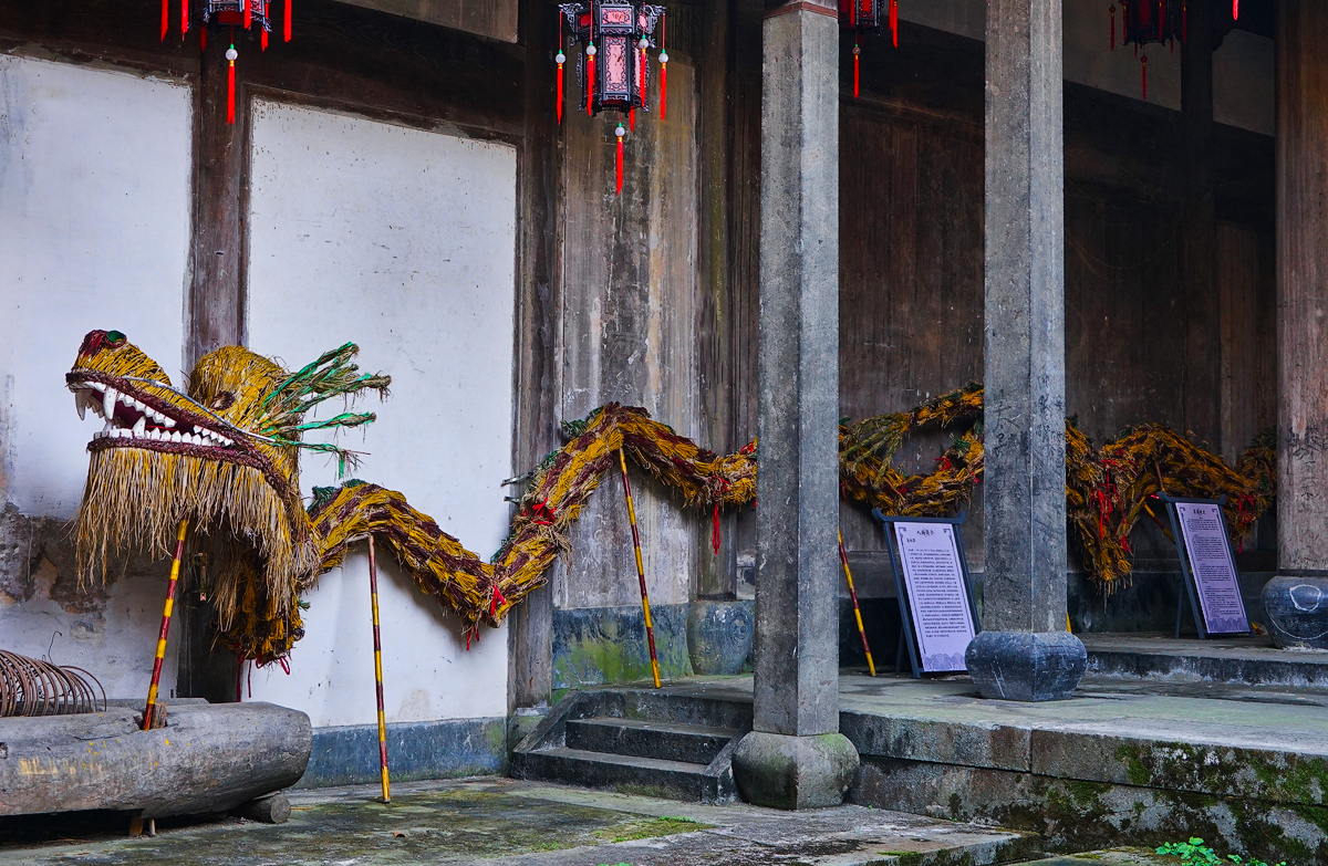 里面据说是朱元璋“第一世家”的真迹,享堂内的两根楠木大柱柱围达5.1尺,柱上悬挂的一幅楹联特别引人注目:“惜衣惜食缘非惜财而惜德,求名求利只须求己莫求人。”它告诫吴氏子孙以道德处人处事,以勤奋成名成仕。另外还有舞艹龙,是昌溪的习俗。