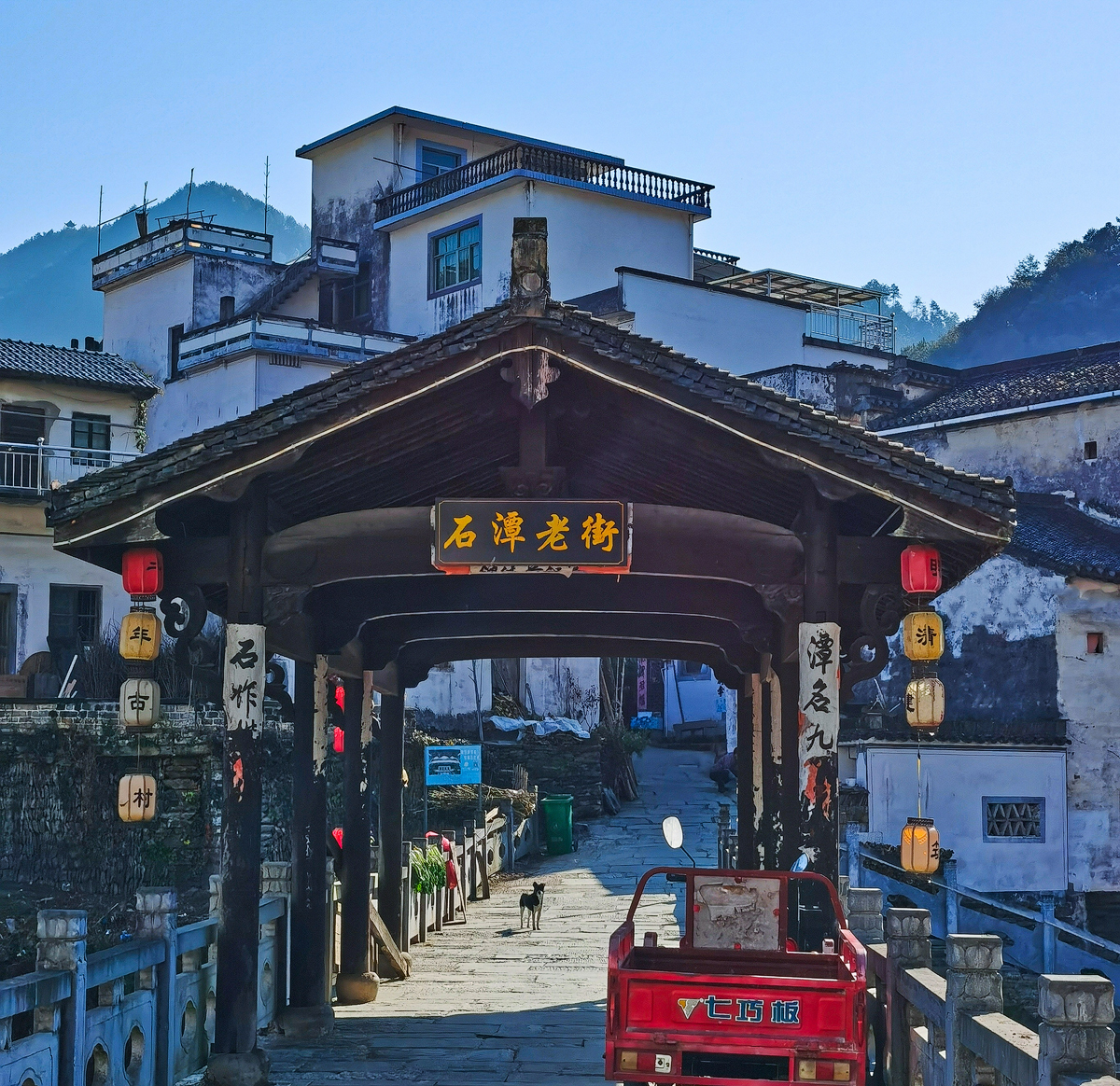 石潭村历史悠久,自然风光旖旎,山清水秀,人文景观灿若明珠。古石潭人善于经商,造就了较发达的商业,村中店铺林立,是旌德、歙县徽商从水路经新安江往杭州的重要通道。