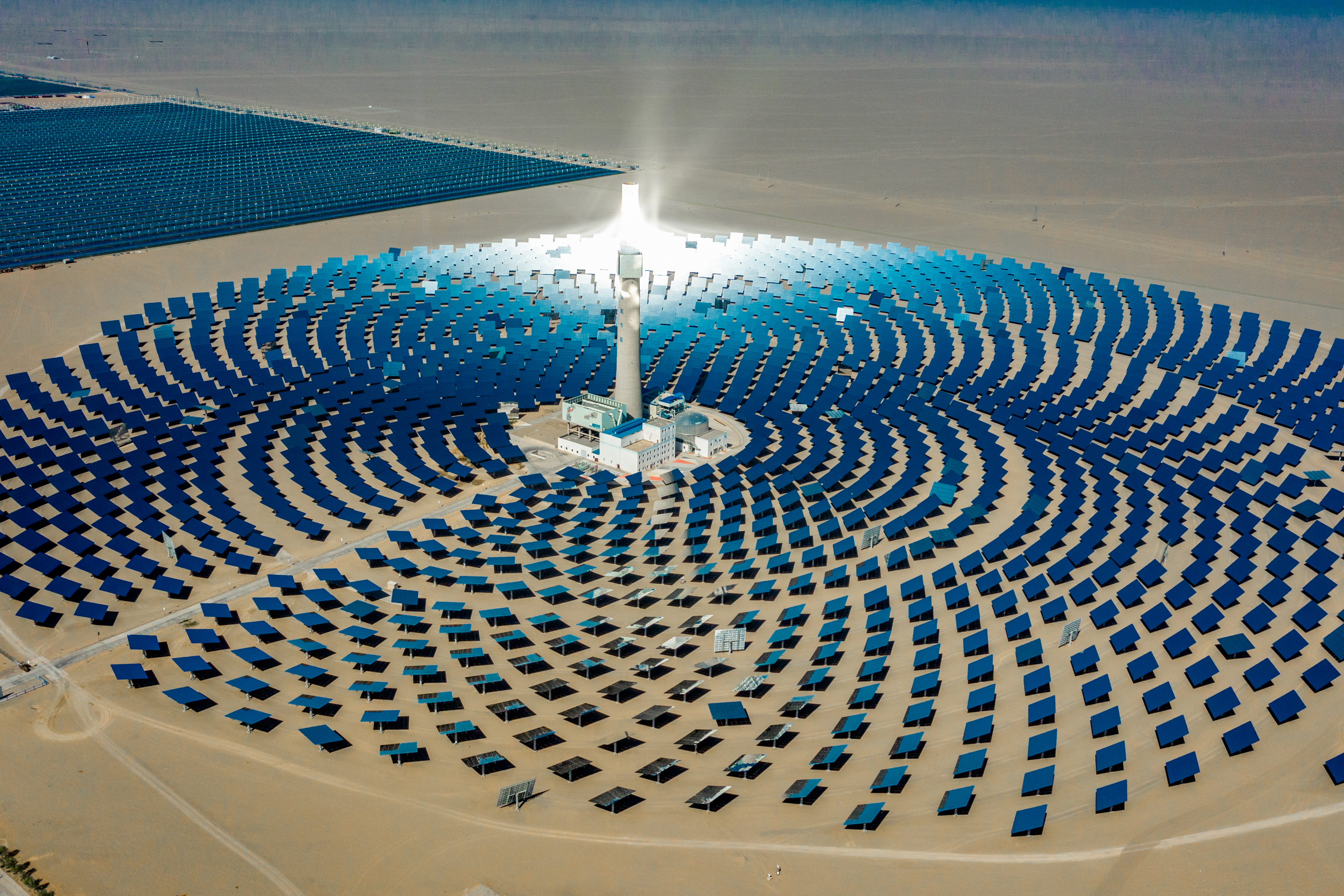 敦煌 100兆瓦熔盐塔式光热发电站2016年入选 中国 国家能源局“第一批太阳能热发电示范项目名单”,被形象地誉为“超级镜子发电站”。在占地7.8平方公里的场区内,逾1.2万面 定日 镜以同心圆状围绕260米高的吸热塔,如同盛开在戈壁上的巨大“向日葵”,其通过聚光吸热、储能换热等环节将太阳光转化成能,为千家万户送去清洁能源。白天,电站吸热塔顶部形成的璀璨光点在数十公里外可见,成为当地一景。