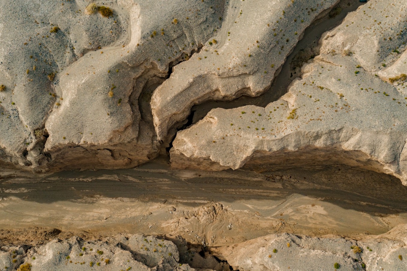 谁又能想到俄博梁深处,还藏着一个金黄色的神秘仙境呢?一路沿地标前行,已步行两个小时有余。加之天气炎热干燥如果再不能到达目的地,真准备返程了,好在melo及时飞起了无人机,告诉大家前面不出两百米就是硫磺湖了!翻过这个坡一定肉眼可见~大家再坚持一下!自此,无人机又多了探路这一实用功效
