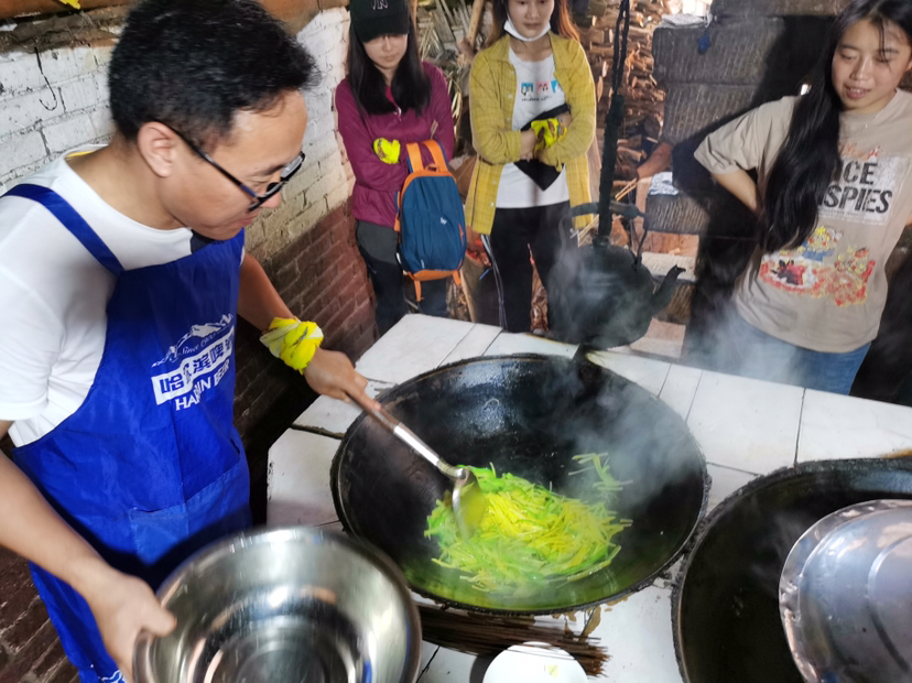 自己动手去地里摘菜🥬 围坐在一起生火做饭。