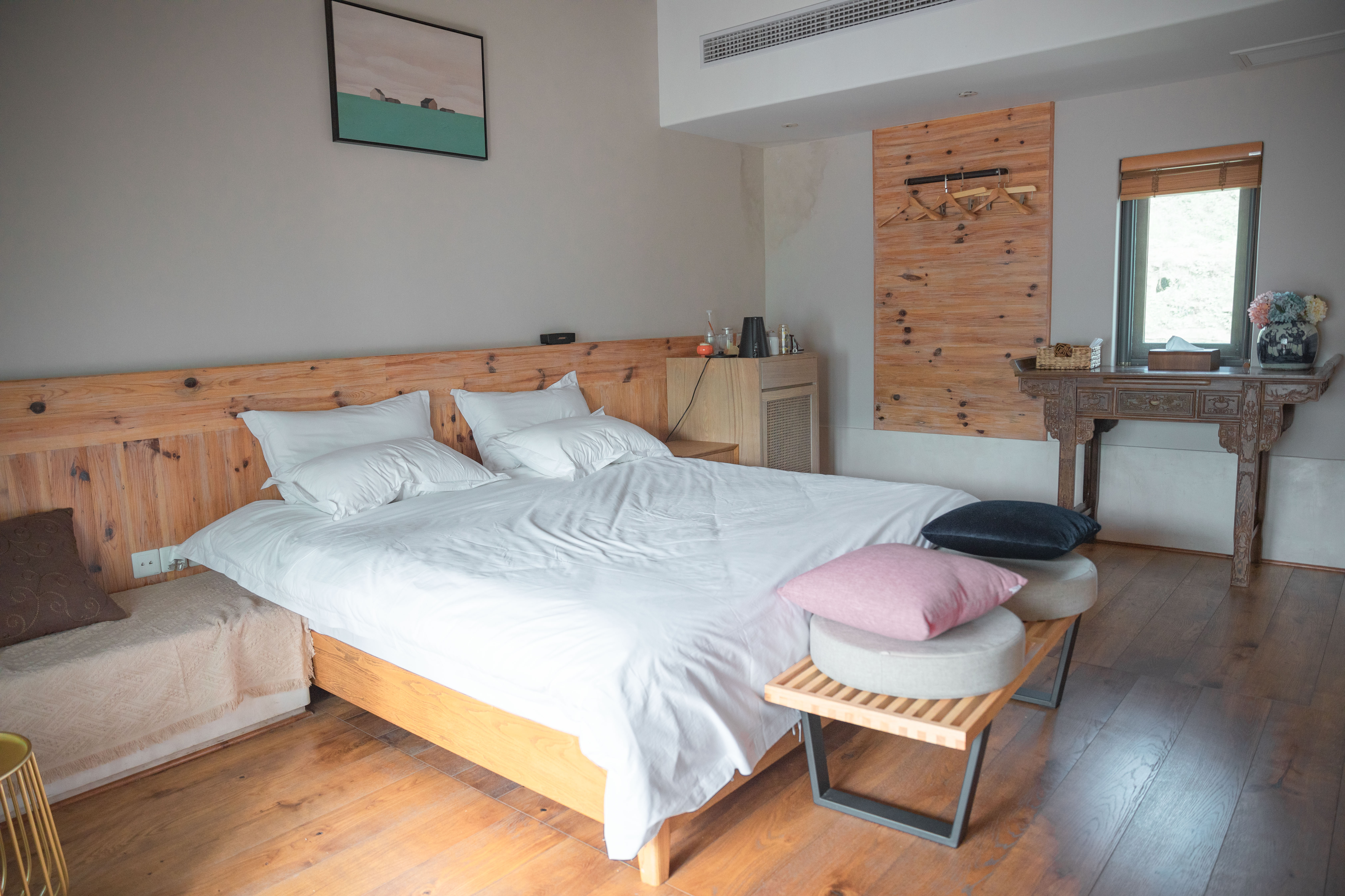 在徽派的主体建筑之下,房间内却是很现代化的设备,来自法国娇慕品牌的DAMANA洗护套装,德国贝朗的卫浴,,定制的床品,房间里都设有地暖、中央空调,门牌取自宋词里的满庭芳、西江月、长相思等古韵满满深得我心,现代和历史的结合,让这方民宿变得特别又极度舒适,细节之处都能看得出民宿主人的用心。