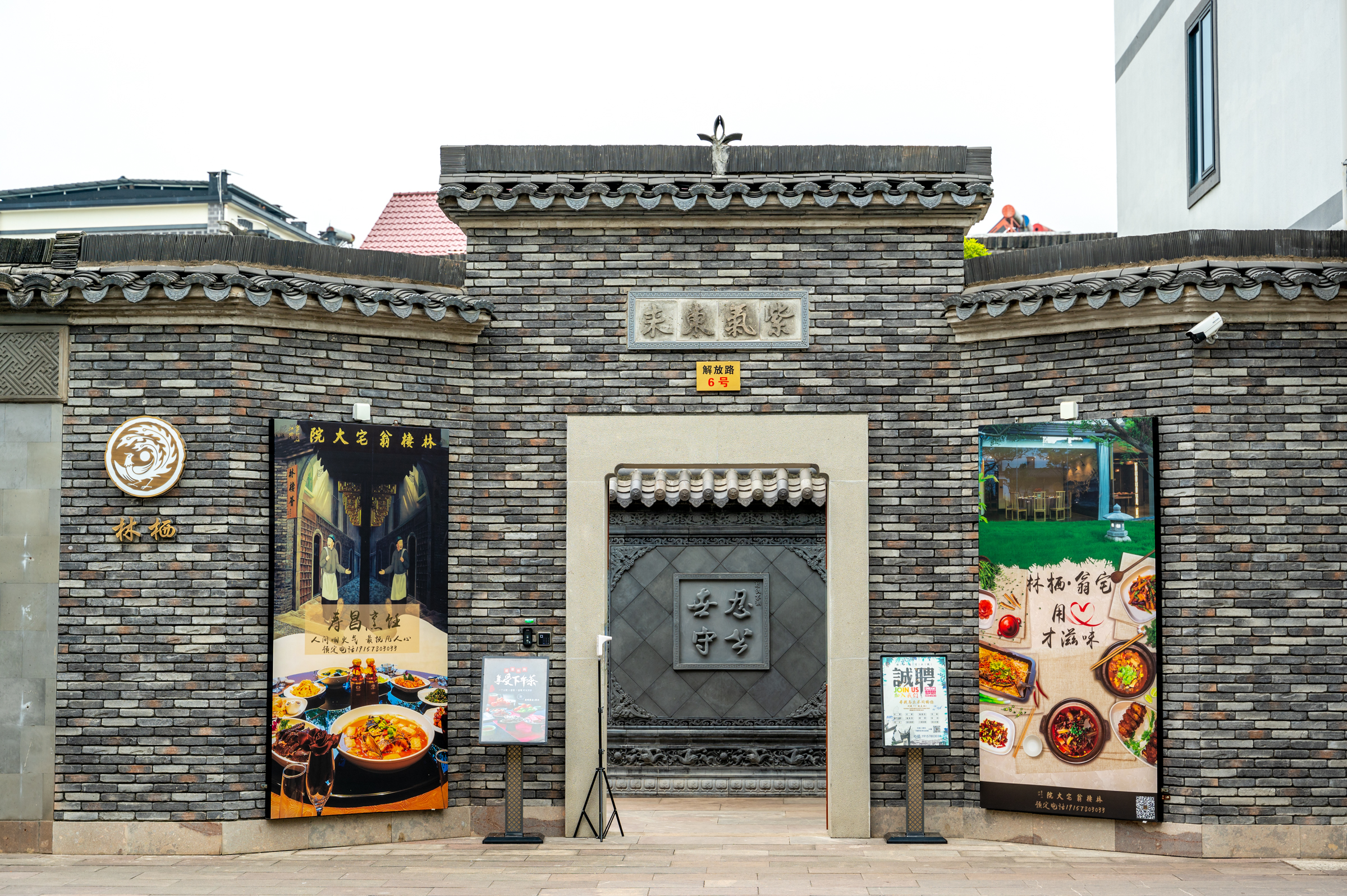 民宿地处解放路上,临近909美食一条街,有着大隐隐于市的感觉,徽派风情的门头十分低调,一不小心可能就从门前走了过去,而若转身走进去,一定会给你一种别有洞天的感受,“紫气东来”的匾额寓意吉星高照、福气到来。