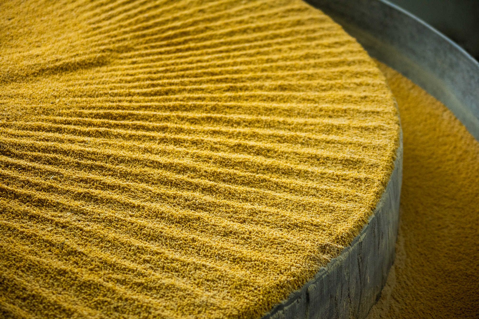 不曾想电影照进现实,预言成了真,甘肃深谷坊石磨制粉食品有限公司坚持石磨加工,虽然电力代替了畜力,但深谷坊的产量并不高,电动石磨组1小时的产量只有800公斤。
