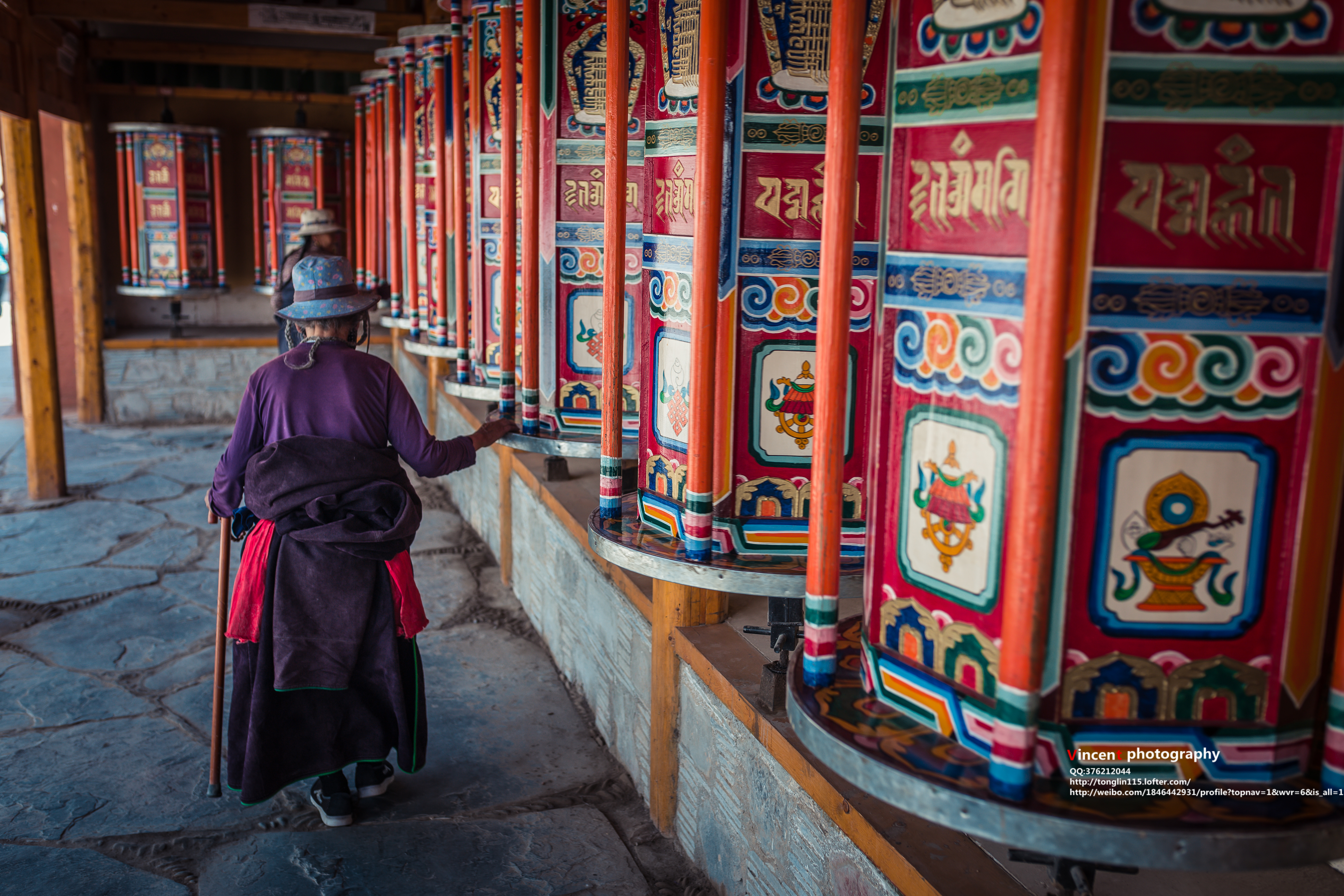 虔诚的朝拜者,手持并轻摇铜质的或大或小经筒,口吟六字真言,目光坚定而无杂念,在他们心中的圣路上永不停息的朝拜着