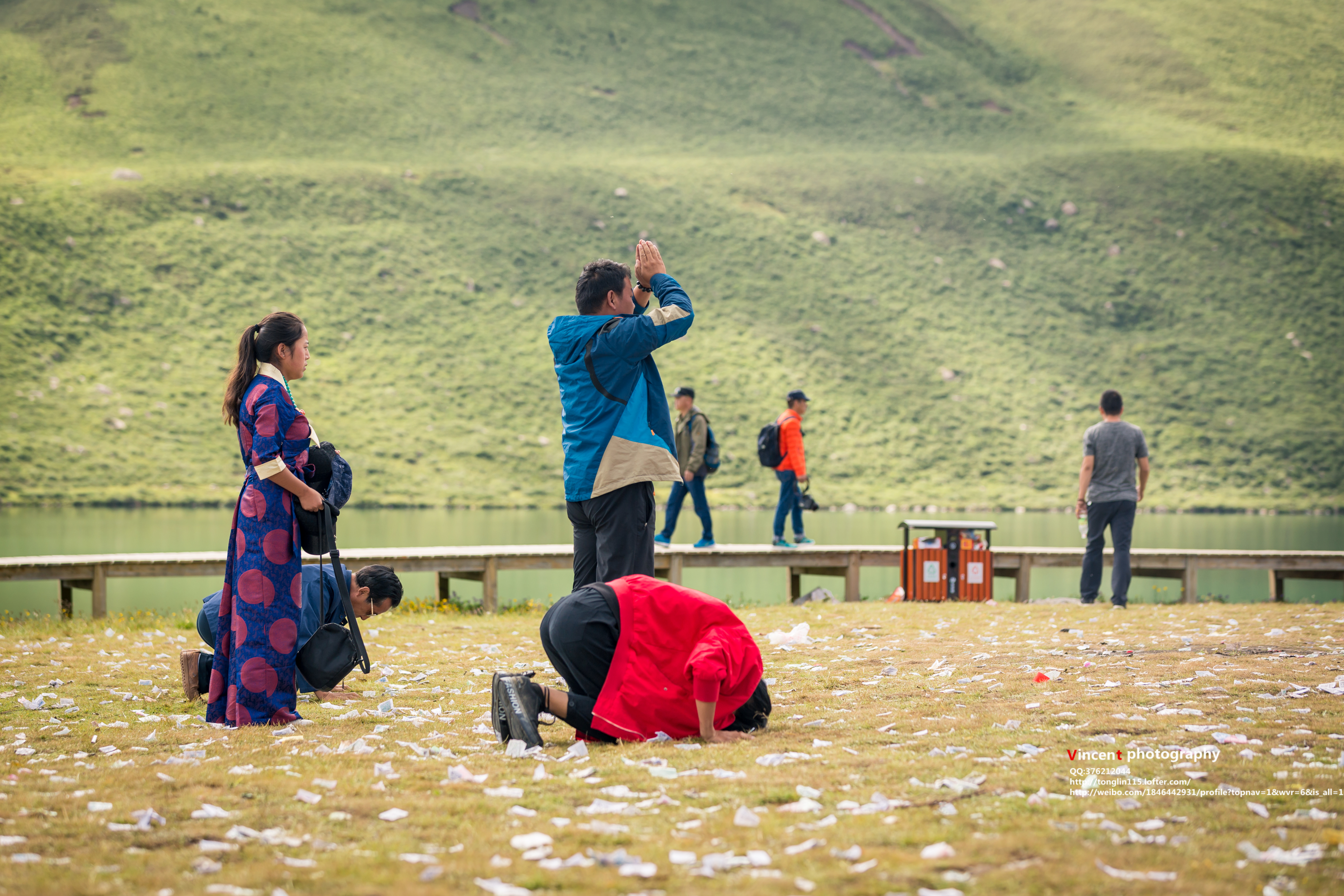 湖面的方向却是一片晴朗,可怜的白牦牛因为另类的颜色而变成了供游客拍照的赚钱工具