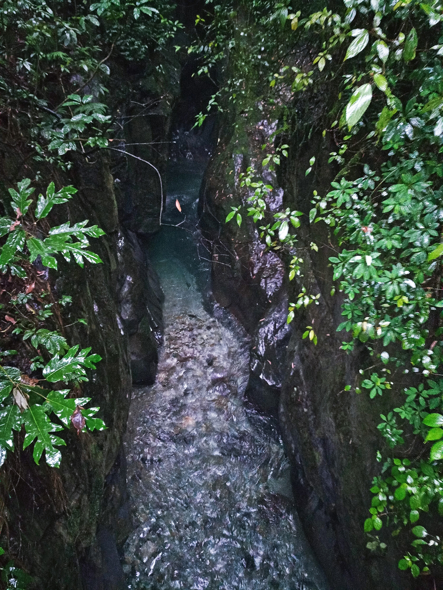 游客在“一线天”的小溪边,除非你要洗脚,这里是非常难走啦。