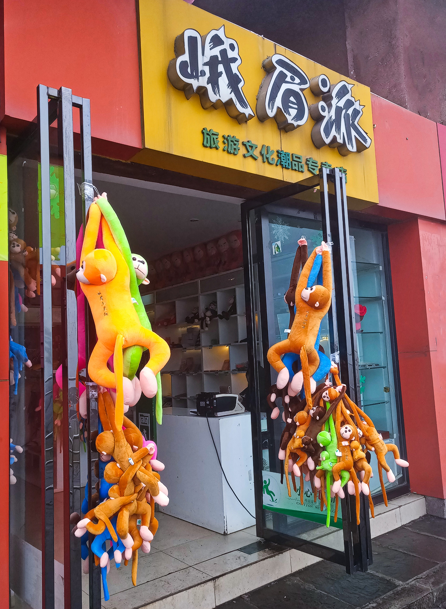 路边的小店都有售卖小猴子的玩偶,桥边的石雕也都是猴子的凳子造型,峨眉山啊,这里就是猴子的老家和天堂……
