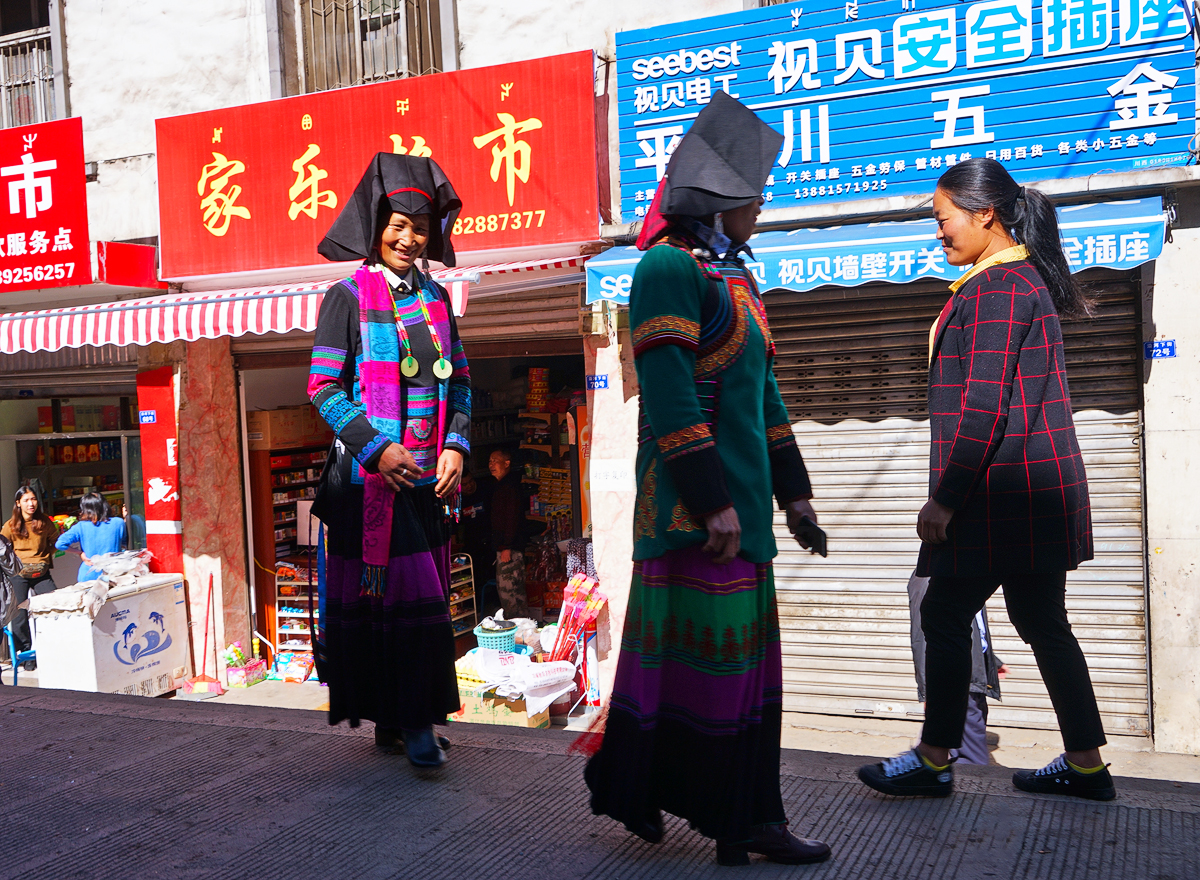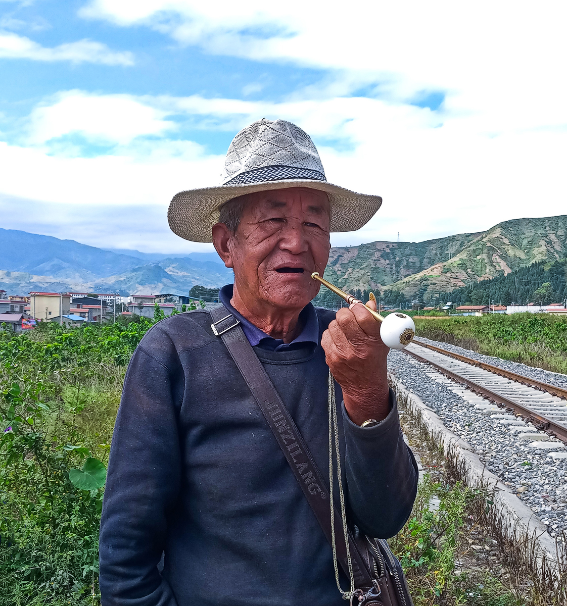 拍摄路边的几位抽着水烟的彝族老汉。据说每年8月,彝族的火把节也会在这里隆重举办。