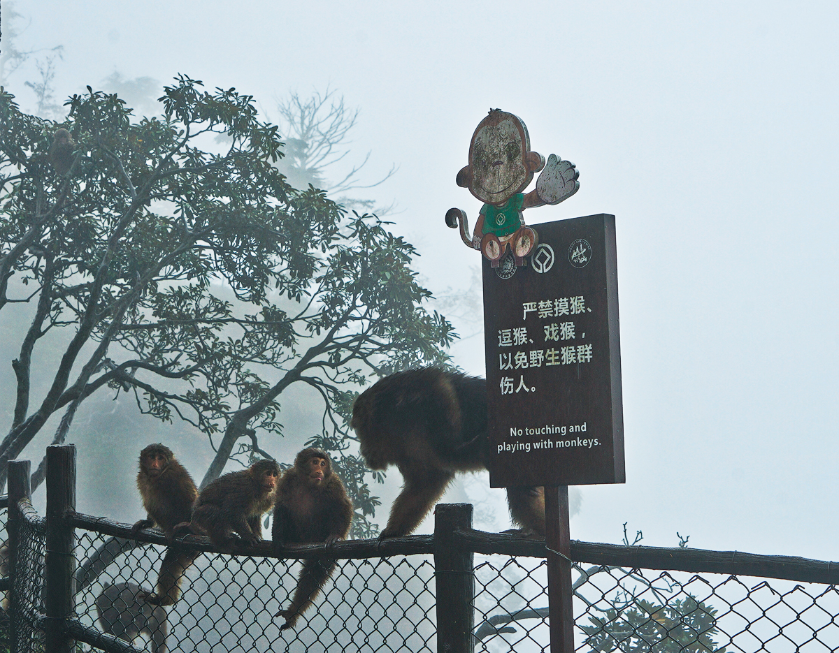 大多数猴并不是想象中的那么友善,会抢夺游人食物或拎包,所以轻易不要离开栈道,也不要手上拿着食物进入园区。山路沿途有较多的猴群,有时扮像可爱,其憨态可掬又令人忍俊不禁。所以峨眉山的猴子,就是一道不可错过的景观,也成为诸多游客谈论的话题。