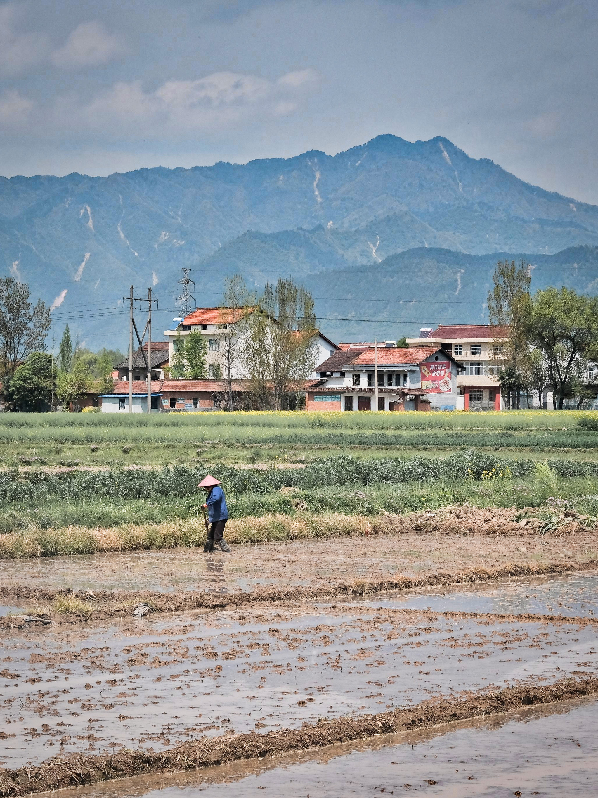 沿途见远山重叠,红白屋顶的房子与油菜花田相交错,靠近市内的花谢的早,山里的晚一些。看见好多当地人已经开始翻田锄地,遂至官沟村停靠随拍。