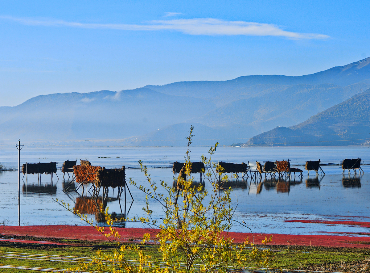 冬春季节, 纳帕 海湖面缩小,就变成大片的沼泽草甸——依拉草原, 云南 最大的春季牧场。包车环游,自驾旅游,自行车环海都是不错的选择。我们却选择了自驾环海走。蓝天,阳光、红果树、青稞、草原、湖泊……