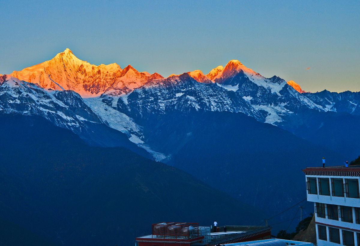 很多摄影师和游客来到这里,就是为了一睹卡瓦格博峰的 日照 金山,作为 云南 省的海拔最高处6740米第一高峰,也是全世界公认为最美丽的“雪山之神”。我们也都在等待着对面 日照 成金山的那一瞬间!