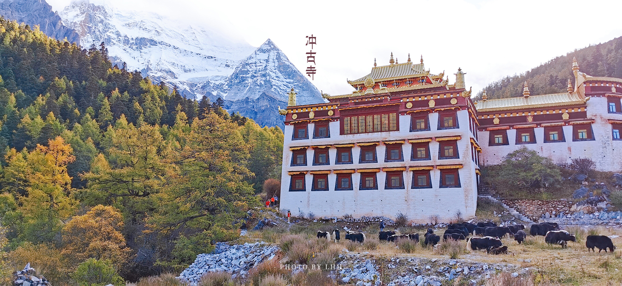 冲古寺犹如天堂之门,守护着神圣的香 巴拉 王国。 洛克 来此考察时曾住此处,他透过寺庙的窗户,远眺月亮下宁静祥和的亚丁村,这就是詹姆斯希尔顿笔下《消失的地平线》中美丽的蓝月山谷的原型。