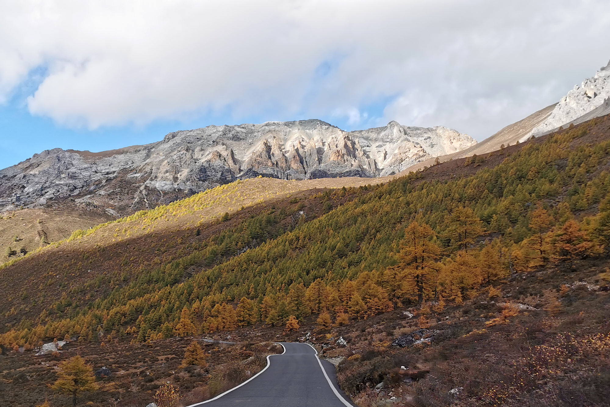 在冲古寺转乘电瓶车前往洛绒牛场,也是徒步亚丁长线的起点,藏族司机大叔愉快的唱起了藏族歌曲,望着两边的迷人秋景和逐渐显现的央迈勇,心情开始雀跃起来。