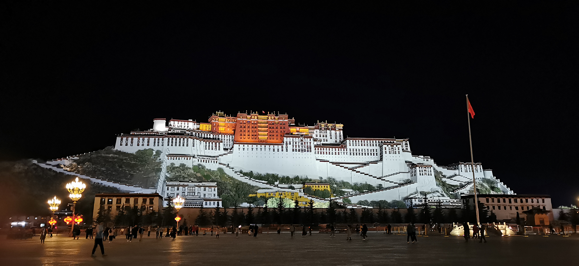 晚上又一次来到布宫广场静静坐了一会,看了音乐喷泉,回味着这趟旅行。漫步走回了八廓街的客栈,穿过渐渐安静的街巷,我终究是一个过客。明天又要回到步履匆匆的城市中,忙忙碌碌。