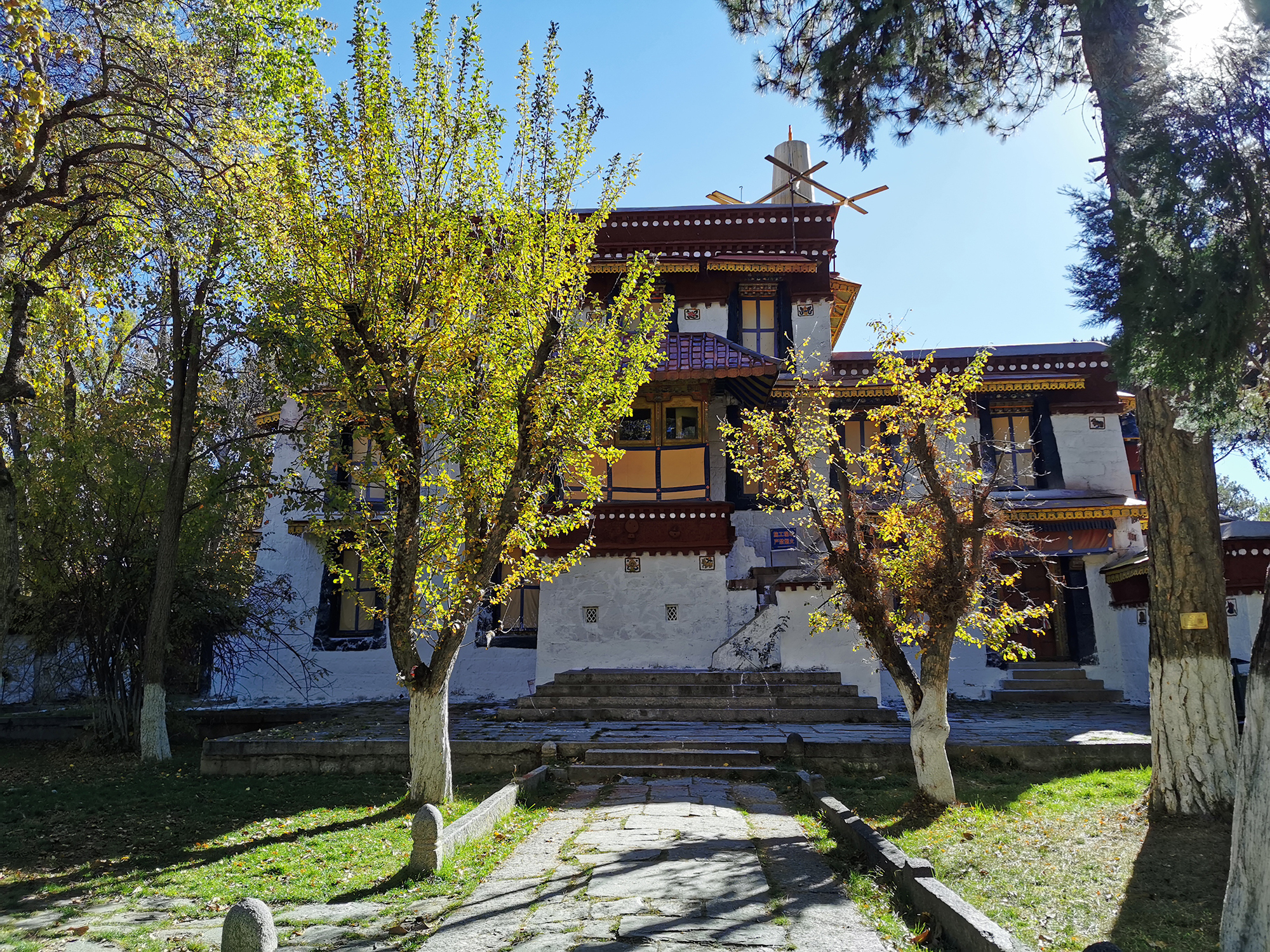 拉萨的很多住宿都是藏式风格,小伙伴都陆续返程之后,自己搬到了八廓街附近住。一家隐藏在八廓街巷子里的藏式老楼,顶楼露台还可以远眺布达拉宫,走几分钟就到大昭寺广场和八廓街步行街,非常方便。逛出巷子就有共享车和公交站。离清真大寺和仓姑寺也不不远(这是我导航找这两个地方的时候发现原来竟然就在附近)。