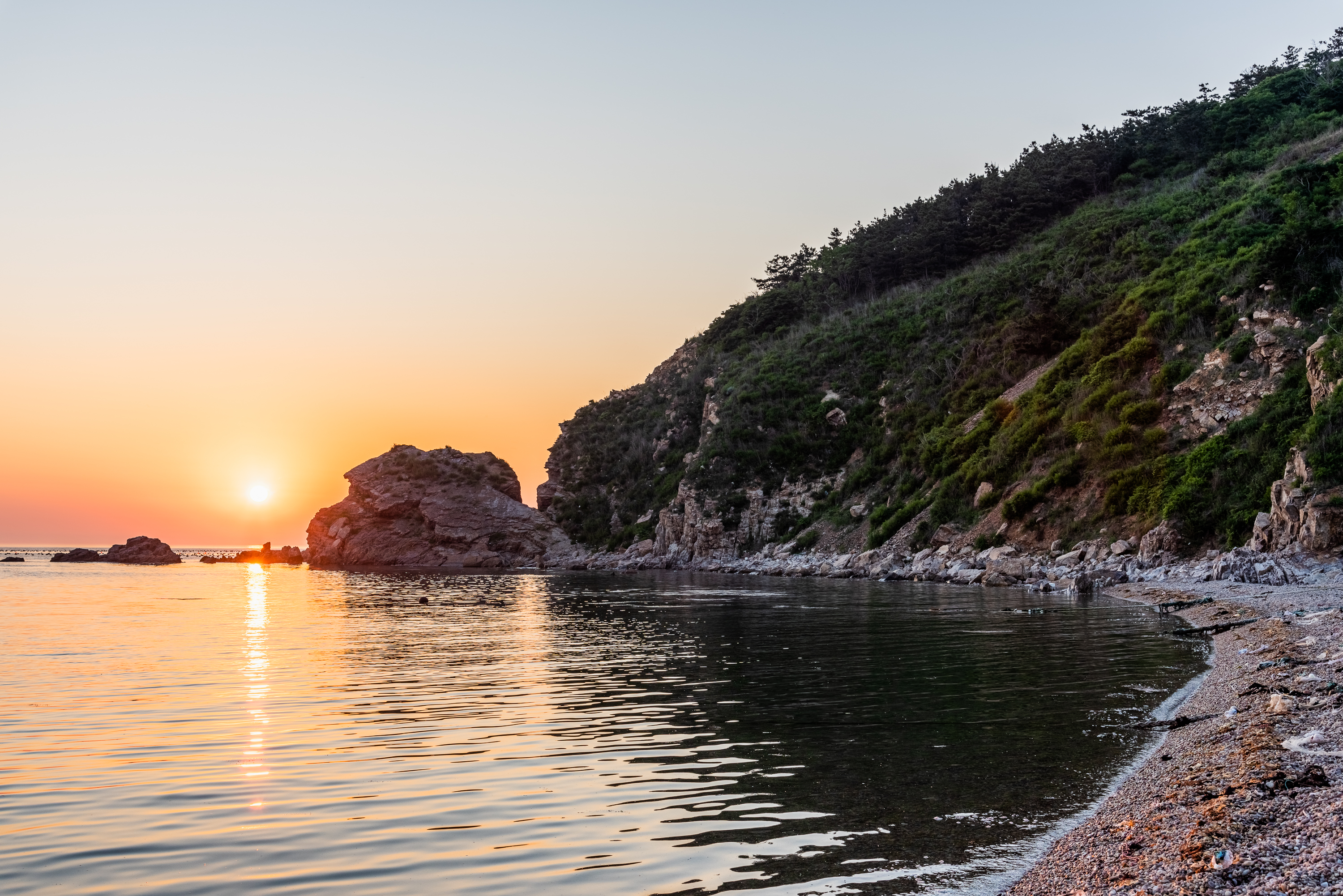 观音礁的另一面就是我们居住的山后村,清晨光照下非常迷人。