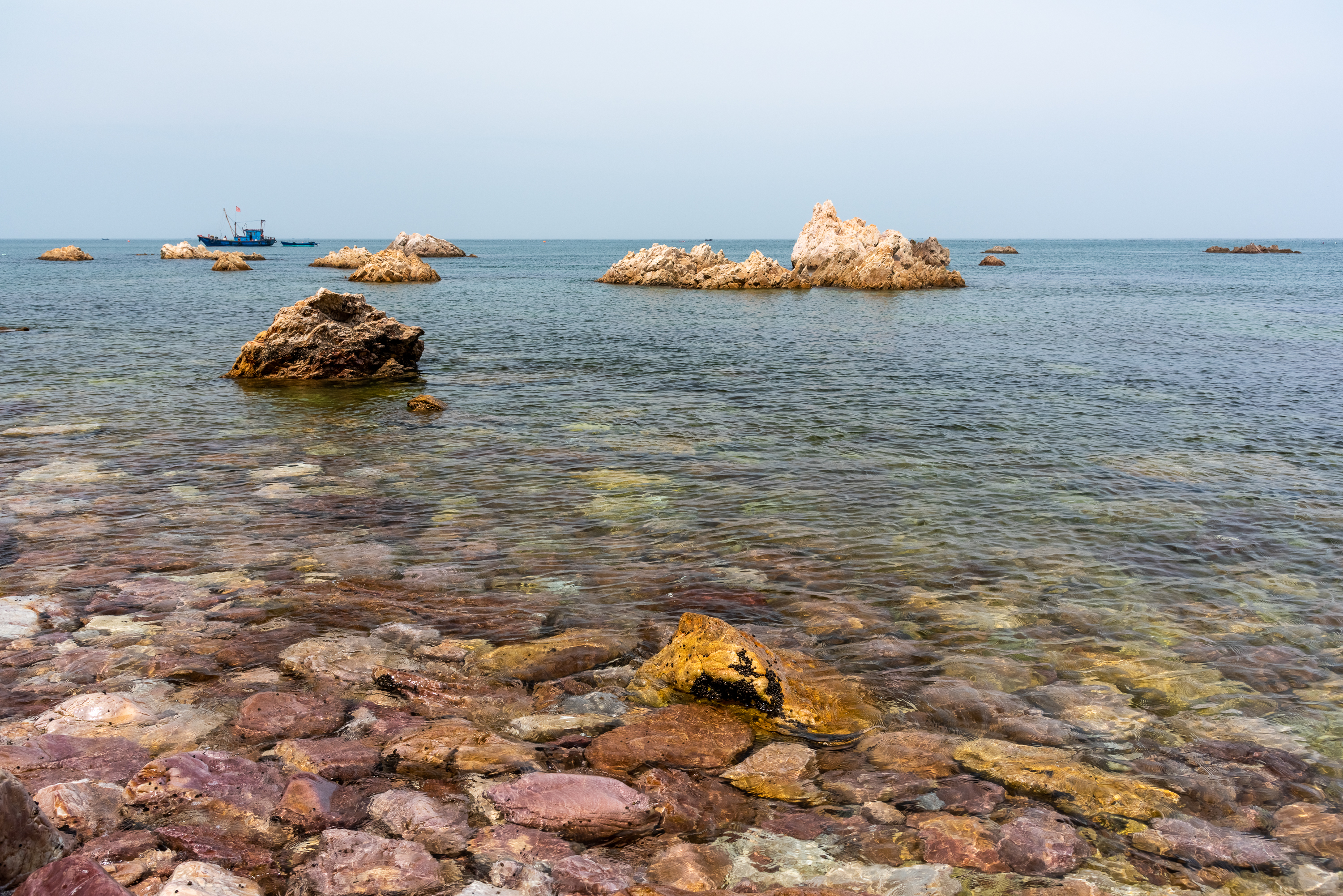 大钦岛说是四个村,其实离得很近,尤其是南村、北村、小浩村几乎没有明确的边界。东村那边有一片海滩,卵石很多很美,但是不让捡,所以一般看看就走了,如果没有人管,估计你可以在那里捡一天。北村西边一片海滩好像是叫西口的地方很漂亮,礁石很美,摄影人应该喜欢。北面山上风景视角很好,但是属于军事区,现在不知道让不让上去。