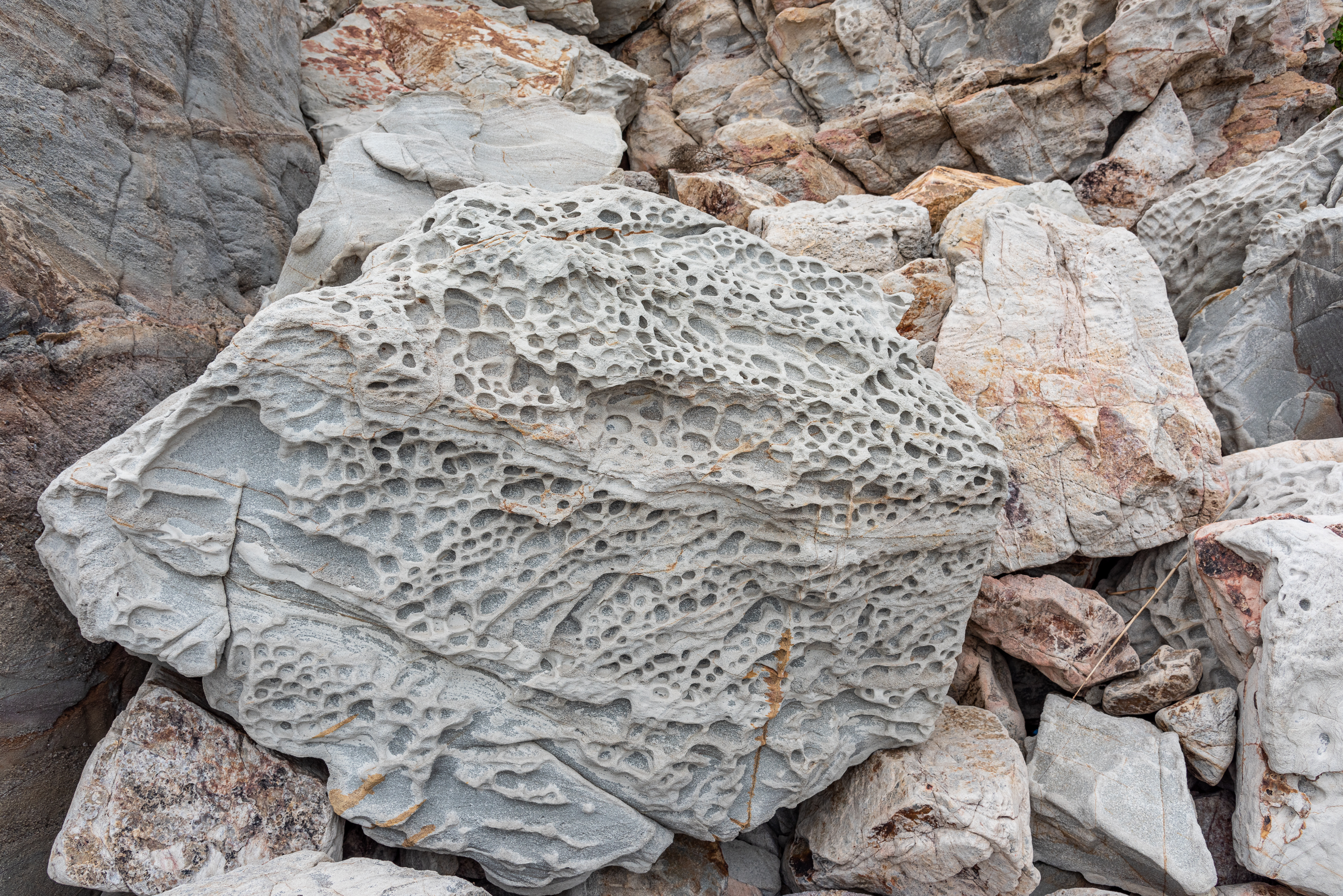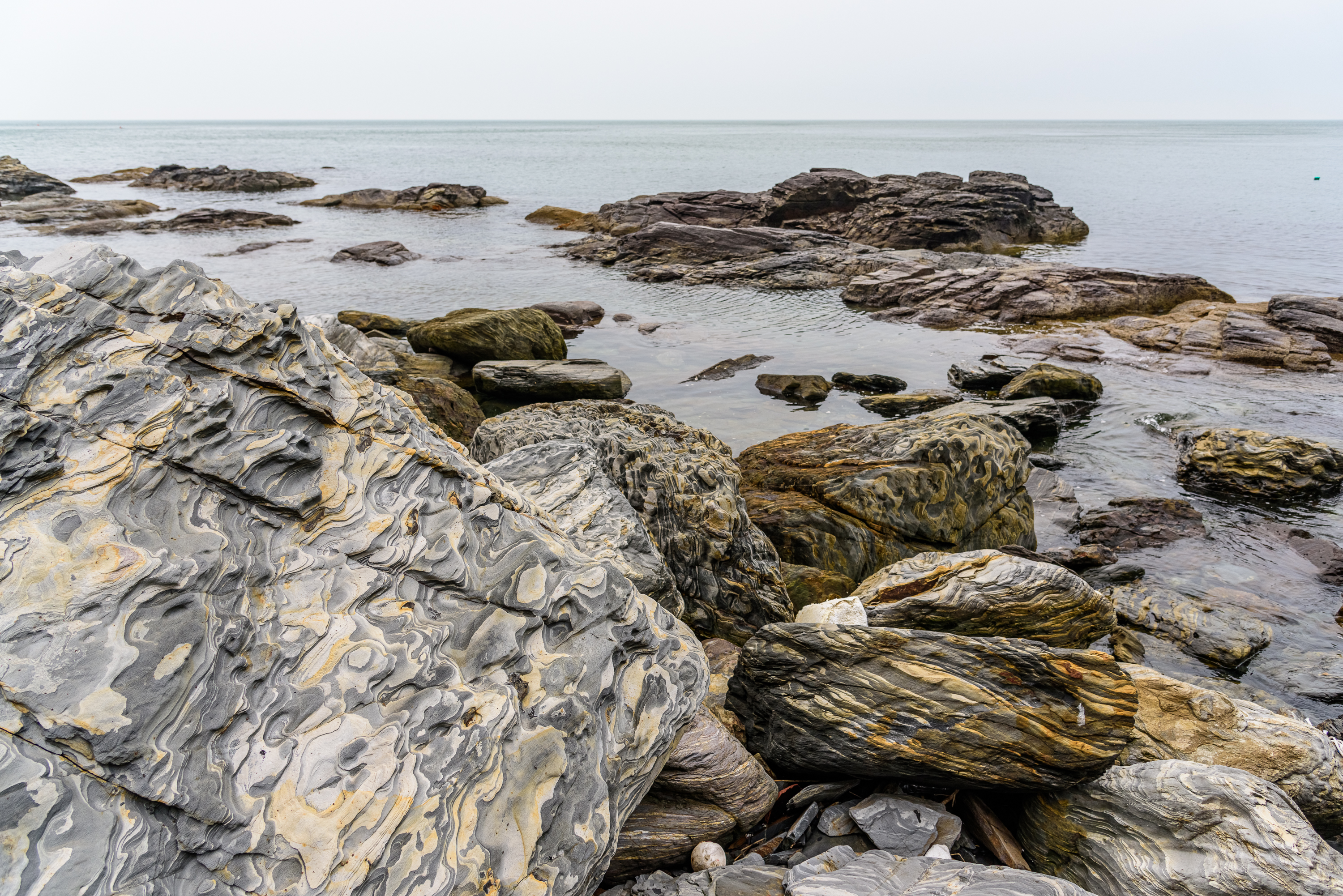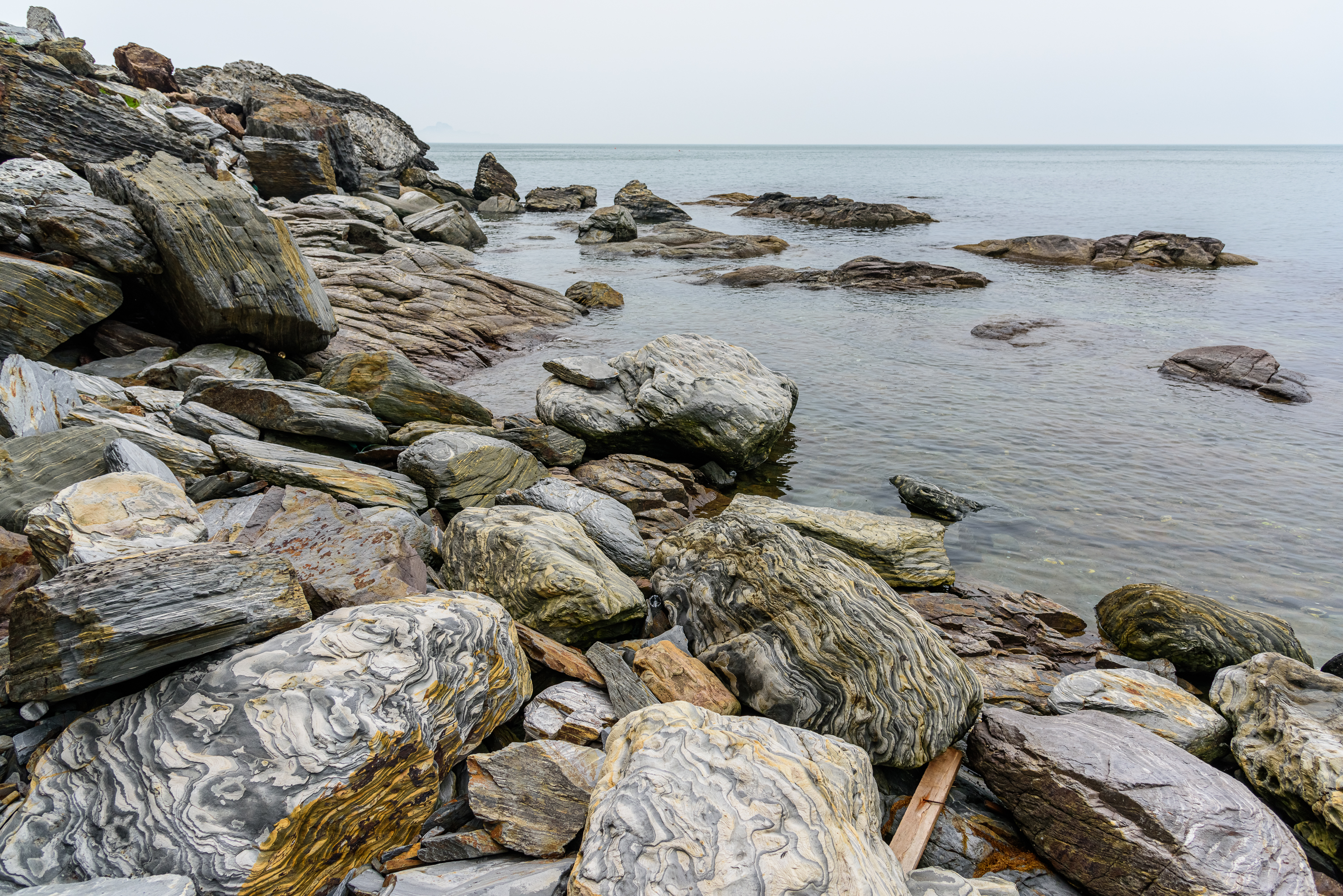 以我的感受,砣矶岛最有特色的是石头,不是砣矶砚,而是各种花纹和颜色的石头。
