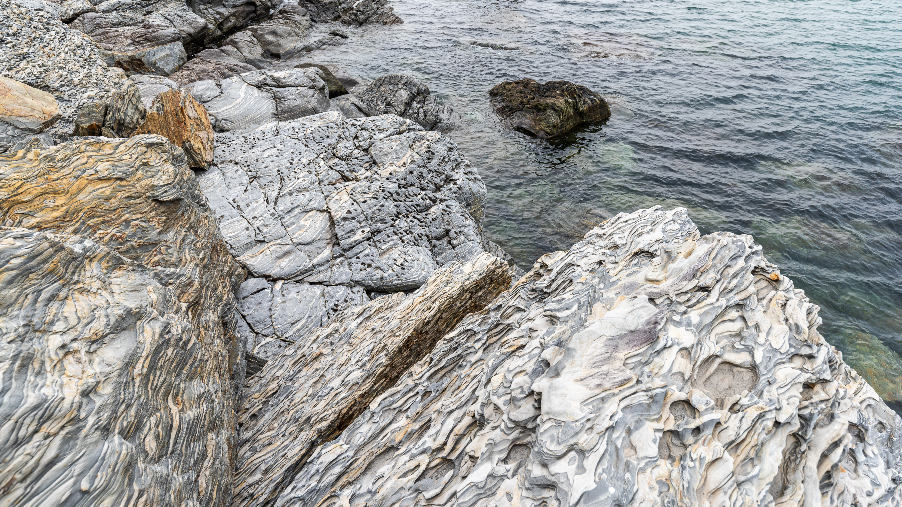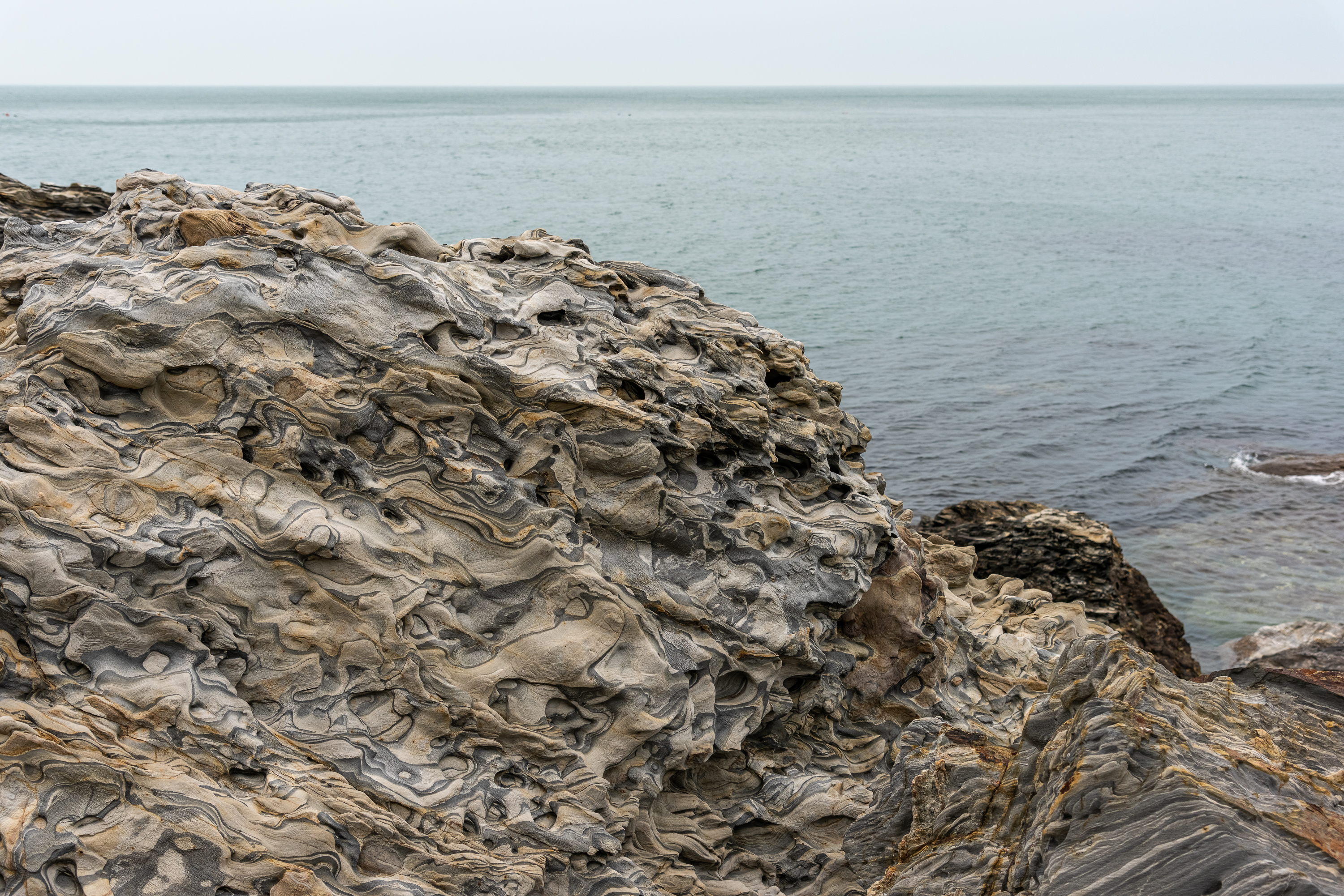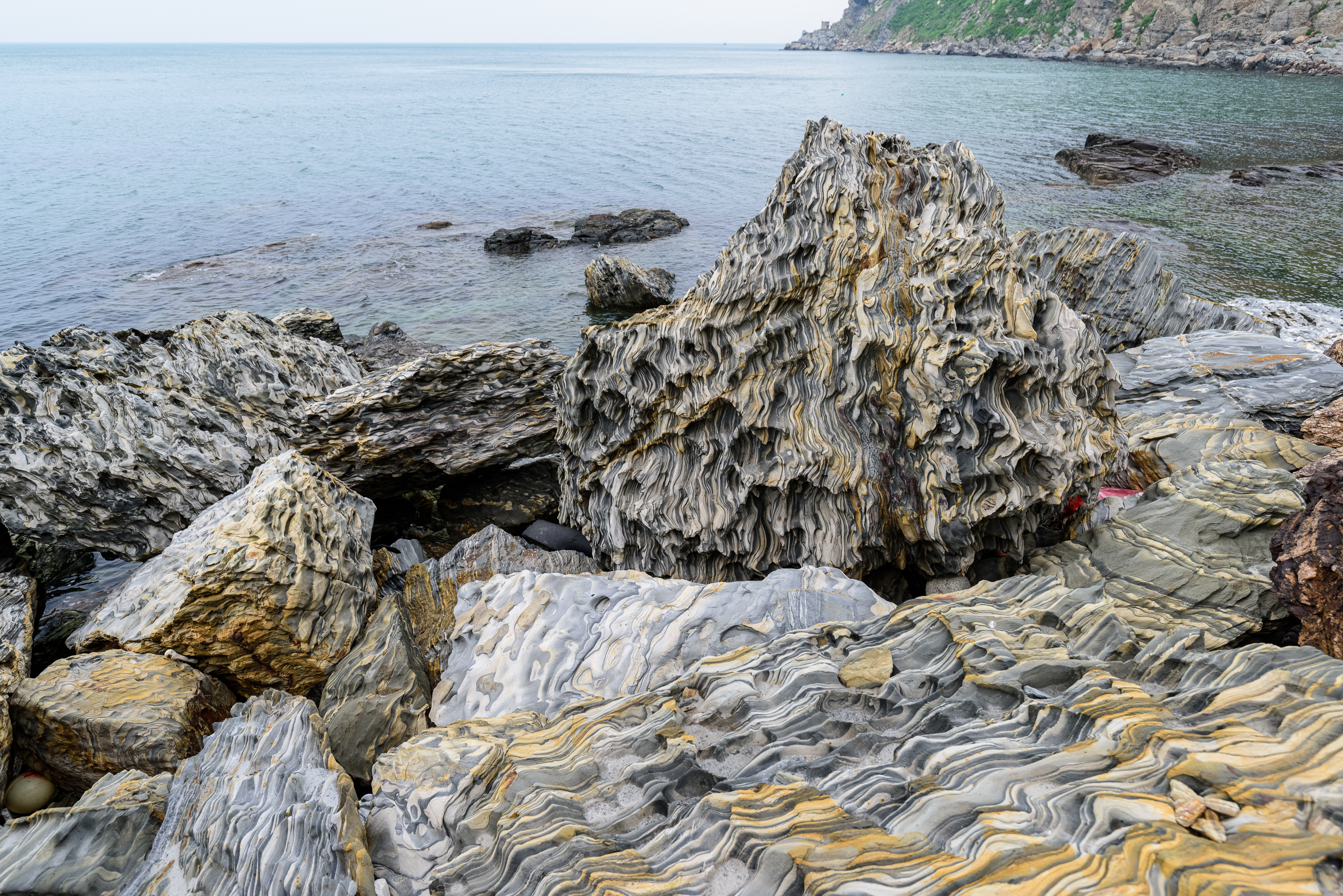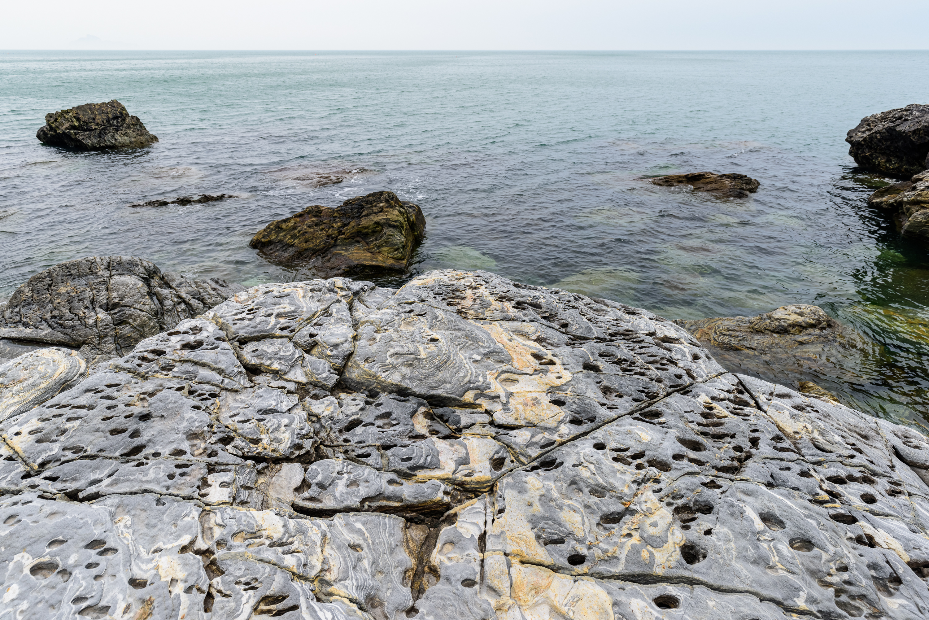 海水浴场的礁石比起前几个岛有明显的花纹线条,但是跟后面看到的相比,真的是微不足道。