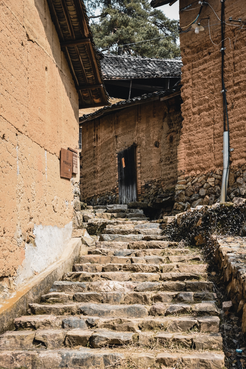 是典型的台地式传统村落,村庄两侧、上下都是层层错落的梯田;