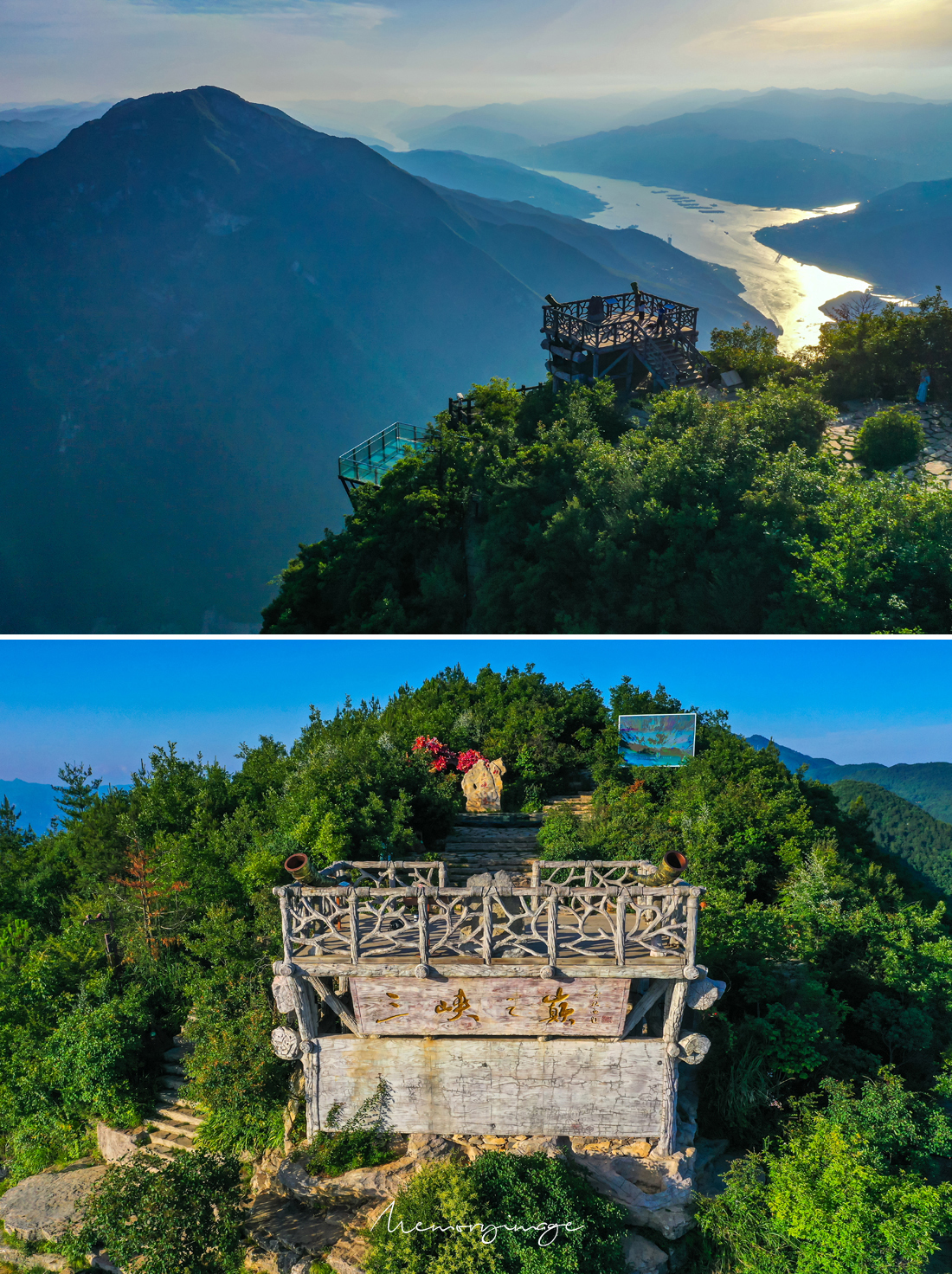 从沉浸的诗歌古韵中走出来,我们一路向上,直抵三峡之巅,没错,这里就叫做三峡之巅,奉节瞿塘峡的至高点,长江映着余晖,闪现金色光芒。