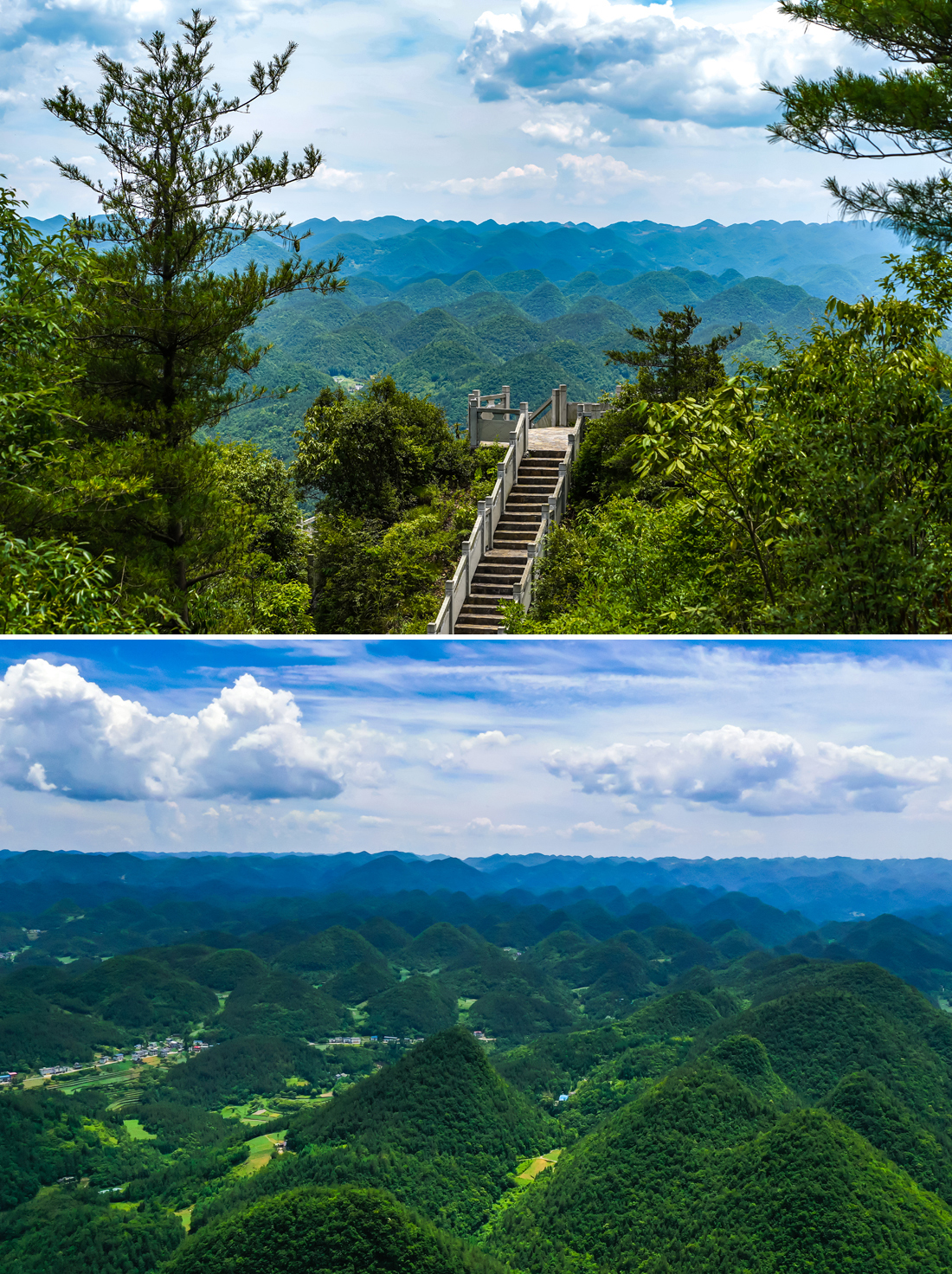 奉节可不止有市区的山水风光,只要你驱车向南,开进山里,你会发现,进入到了全是独特喀斯特地貌的绿意山水,三峡原乡,这座有着旱夔门之称的桃源秘境,就在一段盘山公路旁的谷底,居高临下的望去,一座小山村藏在中间,神秘的引着你去寻它。